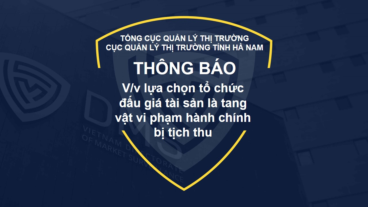 Ngày 23/02/2024 Cục QLTT tỉnh Hà Nam ban hành Thông báo số 127/TB-QLTTHNA về việc lựa chọn tổ chức đấu giá tài sản là tang vật vi phạm hành chính bị tịch thu.