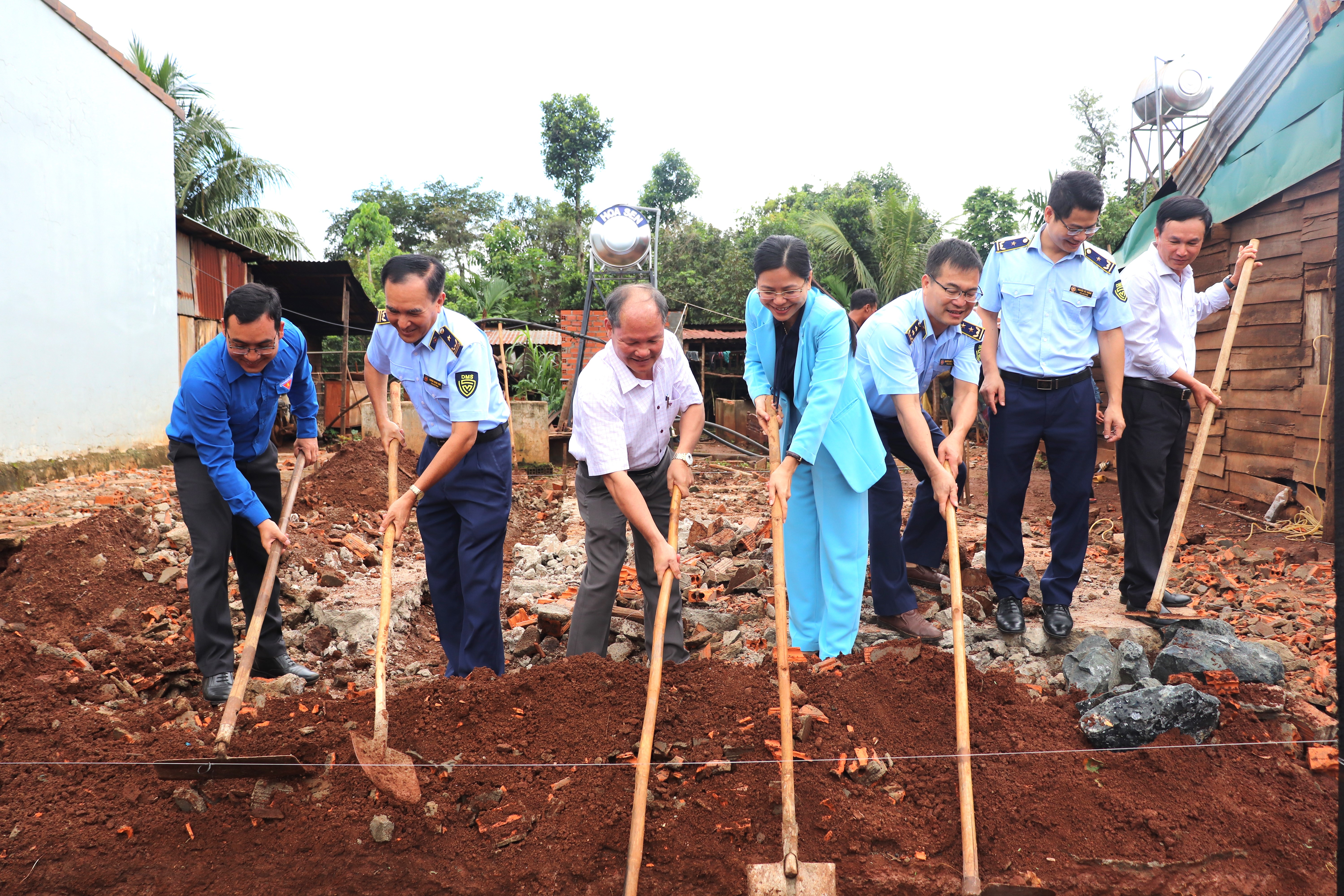 | Đại diện Cục Quản lý thị trường và các cấp chính quyền địa phương thực hiện nghi thức động thổ xây dựng Nhà nhân ái |