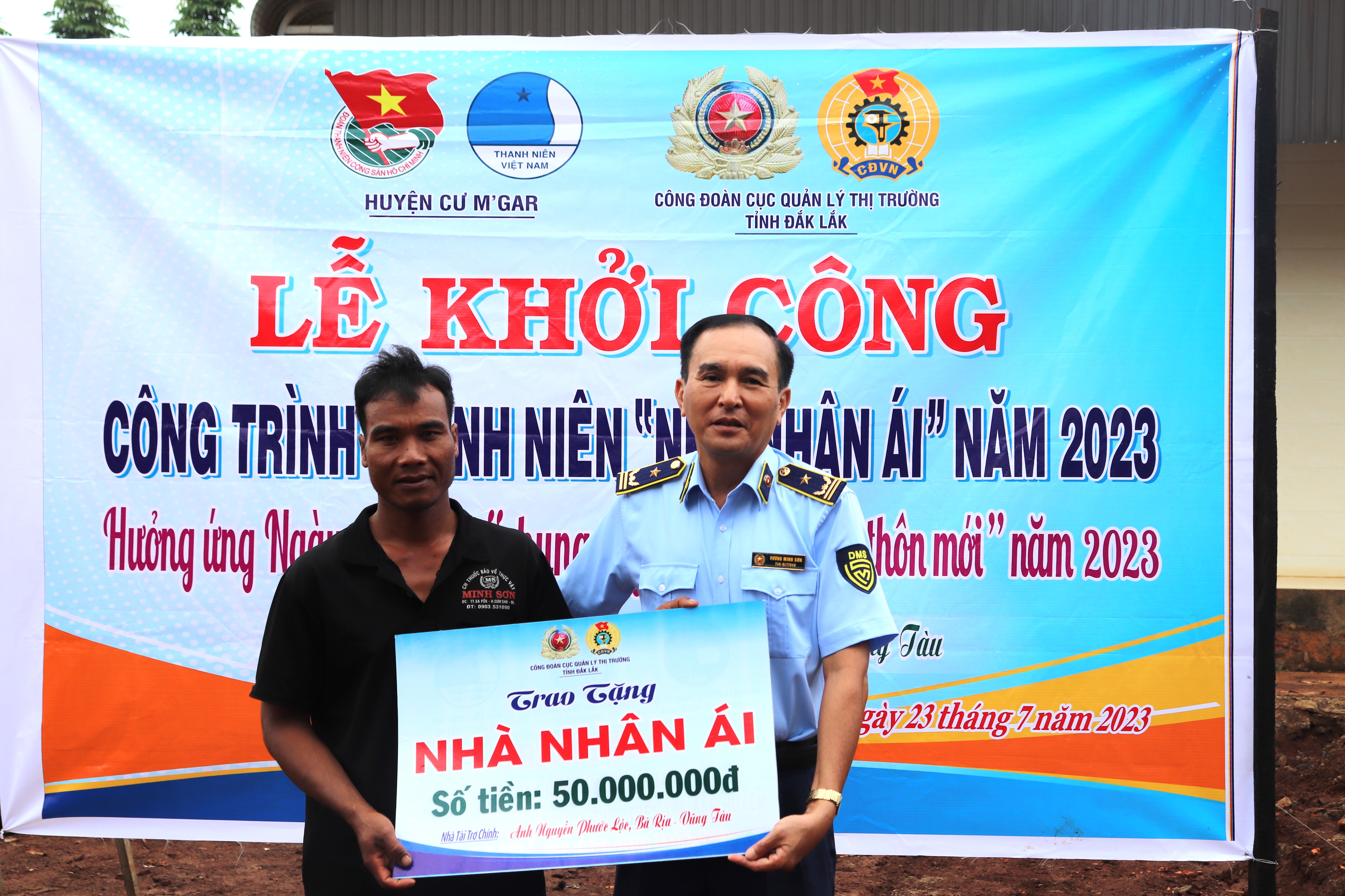Thông qua kênh thông tin của chính quyền huyện Cư M’gar, Công đoàn Cục Quản lý thị trường được biết đến hoàn cảnh gia đình anh Y Yok Hwing - là hộ nghèo, gặp khó khăn về nơi ở của Buôn Măp, thị trấn Ea Pốk. Do đó, Cục Quản lý thị trường tỉnh Đắk Lắk đã làm cầu nối, đồng hành cùng anh Nguyễn Phước Lộc - nhà tài trợ chính của Chương trình và các cấp chính quyền địa phương để xây dựng Công trình Nhà nhân ái trao tặng cho hộ gia đình anh Y Yok Hwing. Hoạt động thể hiện nghĩa cử cao đẹp, tinh thần tương thân tương ái “lá lành đùm lá rách”, góp phần xây dựng mối đại đoàn kết các dân tộc Việt Nam theo đúng chủ trương, chính sách của Đảng và Nhà nước. Đồng thời, cũng thể hiện trách nhiệm của Cục Quản lý thị trường đối với cộng đồng, cùng các cấp chính quyền địa phương xây dựng tỉnh Đắk Lắk ngày một văn minh, giàu đẹp.