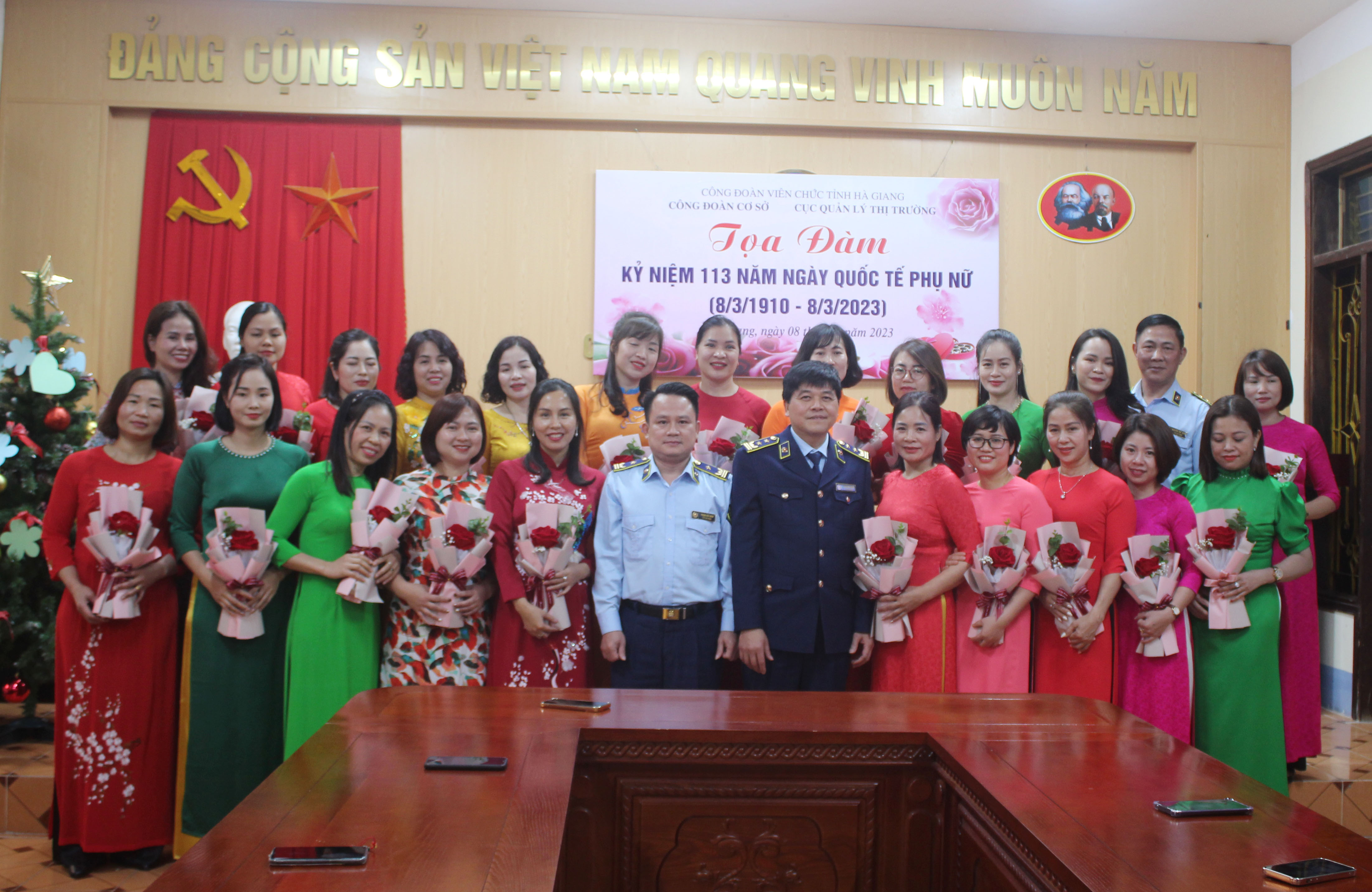 Nhân kỷ niệm 113 năm ngày Quốc tế phụ nữ (08/3/1910 – 08/3/2023), được sự đồng ý của BCH Đảng uỷ, lãnh đạo Cục QLTT. Công đoàn Cơ sở Cục QLTT tỉnh Hà Giang đã long trọng tổ chức buổi toạ đàm ôn lại truyền thống, ý nghĩa lịch sử của ngày Quốc tế Phụ nữ .