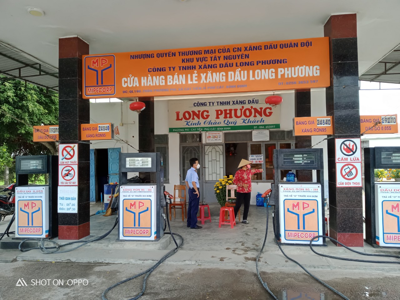 Công chức Đội QLTT số 5 giám sát kinh doanh xăng dầu trên địa bàn huyện Tuy Phước,