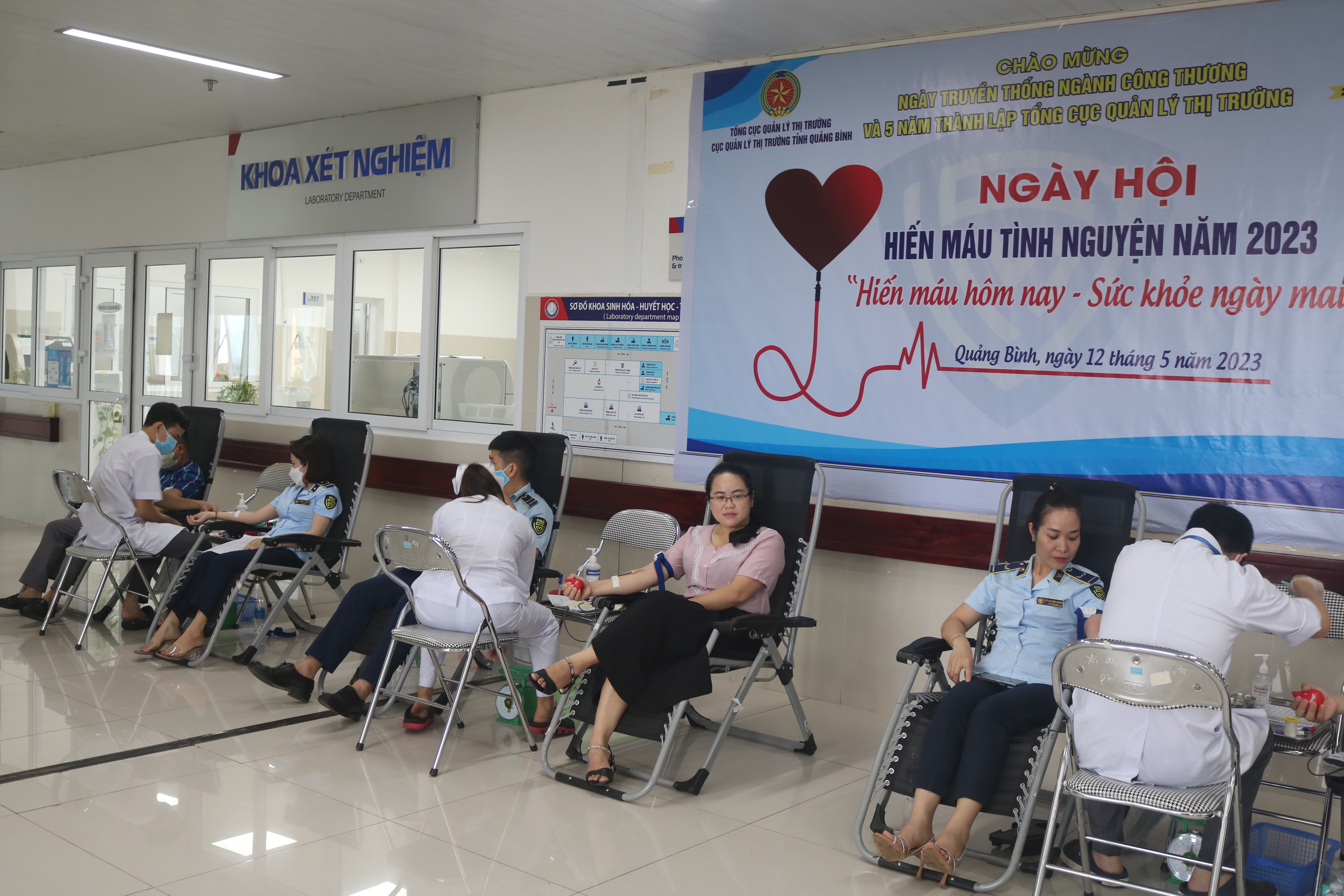 Hướng tới kỷ niệm “Ngày truyền thống của ngành Công Thương” và 05 năm thành lập Tổng cục Quản lý thị trường, hưởng ứng chương trình hiến máu tình nguyện của Tổng cục QLTT, sáng ngày 12/05/2022, Cục QLTT tỉnh Quảng Bình phối hợp với Hội Chữ thập đỏ tỉnh Quảng Bình và Bệnh viện Hữu nghị Việt Nam - Cu Ba Đồng Hới tổ chức thực hiện chương trình hiến máu tính nguyện năm 2023