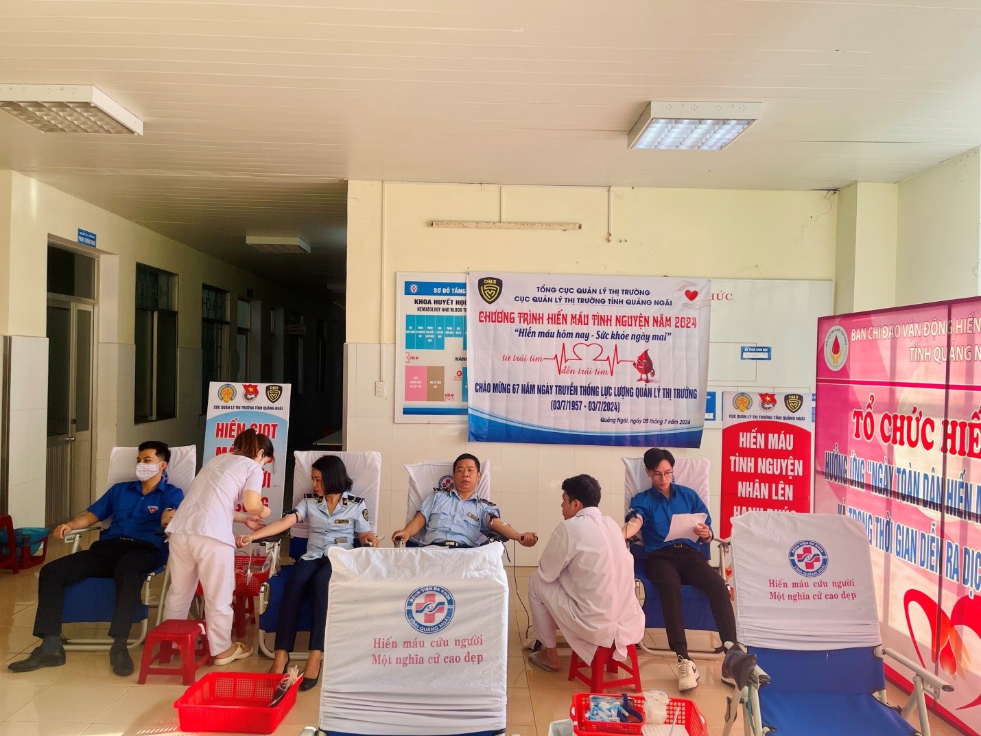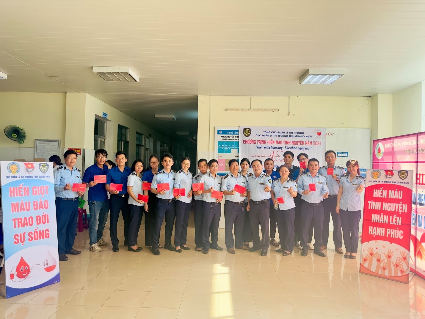 Cục QLTT tỉnh Quảng Ngãi, hiến máu tình nguyện là hoạt động thường niên và luôn nhận được sự tham gia hưởng ứng nhiệt tình của công chức, người lao động, với tấm lòng nhân ái tích cực tham gia tuyên truyền và trực tiếp hiến tặng những đơn vị máu quý giá để sẻ chia với những người bệnh không may mắn.