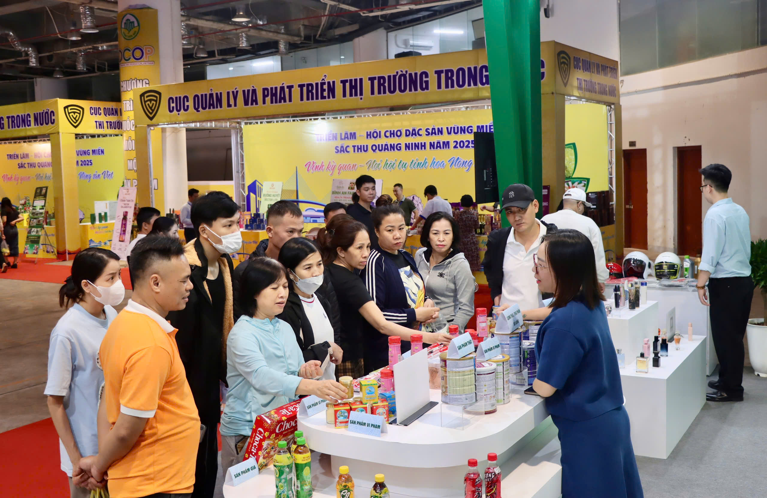 Tại khu vực Triển lãm - Hội chợ Sắc thu Quảng Ninh 2025, Cục Quản lý và Phát triển thị trường trong nước chủ trì việc trưng bày 17 gian hàng đặc biệt, bao gồm 16 gian hàng giới thiệu về các sản phẩm OCOP, sản phẩm là đặc sản các vùng miền và 01 gian hàng nhận diện thật - giả