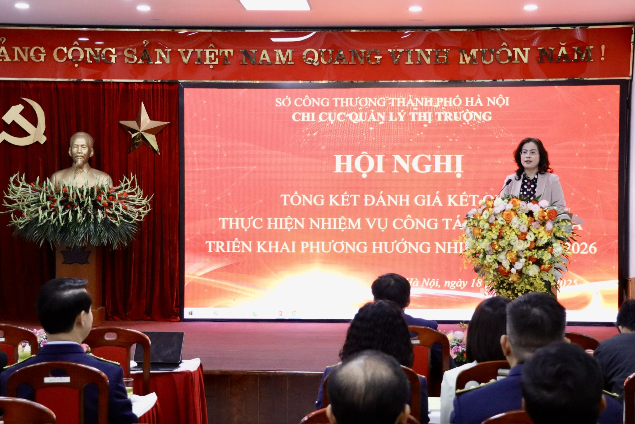 Phát biểu tại Hội nghị tổng kết công tác năm 2025, đại diện lãnh đạo Chi cục QLTT Hà Nội cũng đã chỉ ra những tồn tại, hạn chế; nguyên nhân khách quan, chủ quan và các giải pháp trong năm 2026, đồng thời tiếp thu đầy đủ ý kiến chỉ đạo của Lãnh đạo Sở Công Thương để xây dựng kế hoạch nhiệm vụ trọng tâm năm 2026.