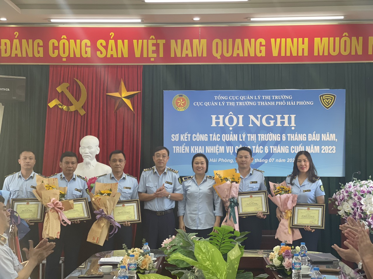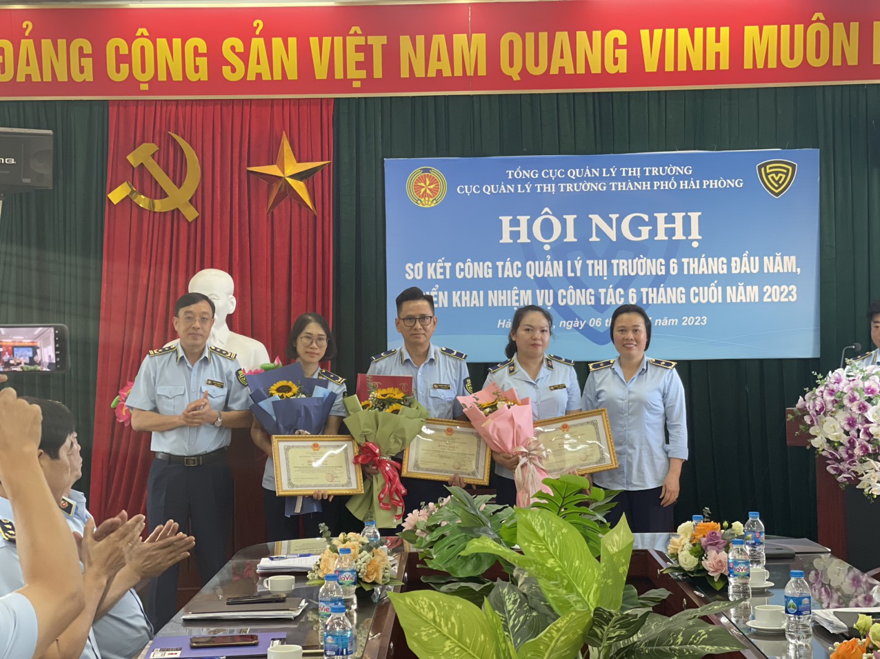 Kết thúc Hội nghị, Thừa ủy quyền của Tổng cục trưởng Tổng cục QLTT và Chủ tịch UBND thành phố, đồng chí Chu Thị Thu Hương – Phó Tổng cục trưởng, và đ/c Trần Thành Vin – Cục trưởng Cục QLTT thành phố Hải Phòng đã trao tặng Bằng khen của Chủ tịch UBND thành phố cho 04 cá nhân; giấy khen của Tổng cục trưởng cho 05 cá nhân có thành tích xuất sắc trong công tác kiểm tra, kiểm soát thị trường.