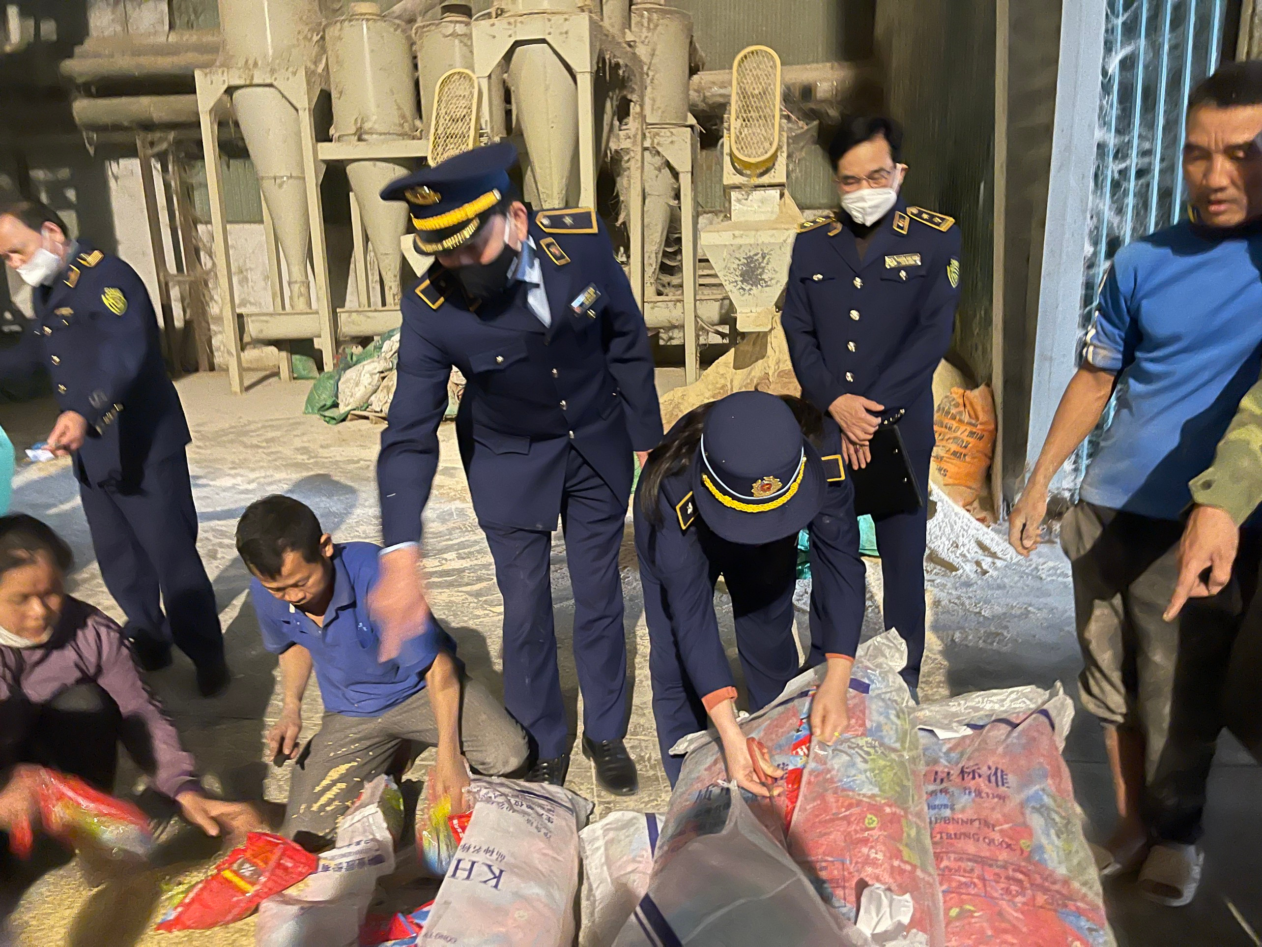 Đội QLTT số 3 và các cơ quan chức năng giám sát việc chuyển đổi mục đích sử dụng đối với 2.000 Kg giống lúa lai 3 dòng KH 336