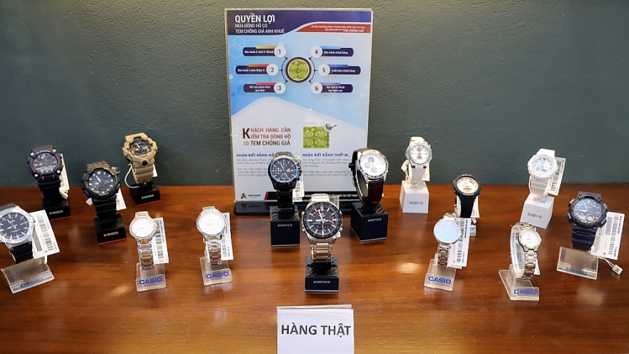 Sản phẩm máy tính cầm tay, đồng hồ Casio chính hãng, hàng vi phạm tại Phòng trưng bày của Tổng cục QLTT