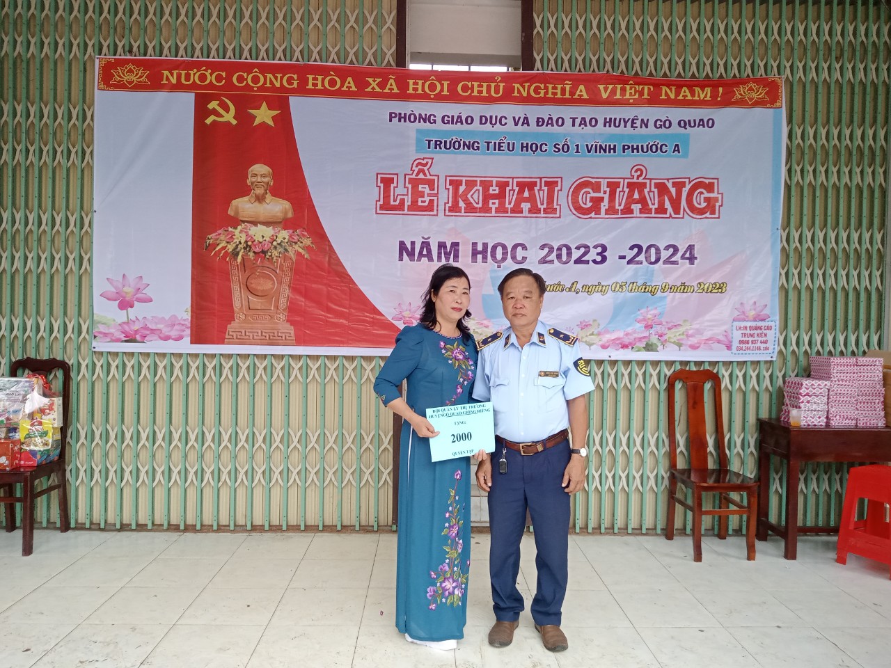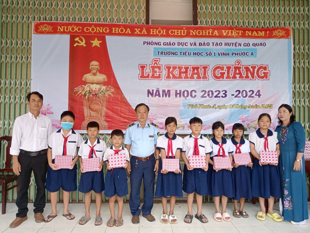 Nhân dịp khai giảng năm học mới 2023 – 2024, Đội QLTT số 7 phối hợp với Tổ Công Đoàn Đội đến thăm và tặng quà cho các em học sinh có hoàn cảnh khó khăn trường Tiểu học số 1 Vĩnh Phước A, huyện Gò Quao, tỉnh Kiên Giang. Nhân dịp này, Đội đã trao tặng phần quà gồm 2.000 quyển tập và 10 triệu đồng tiền mặt vận động được từ cá nhân, tập thể Đội và Tổ Công Đoàn.