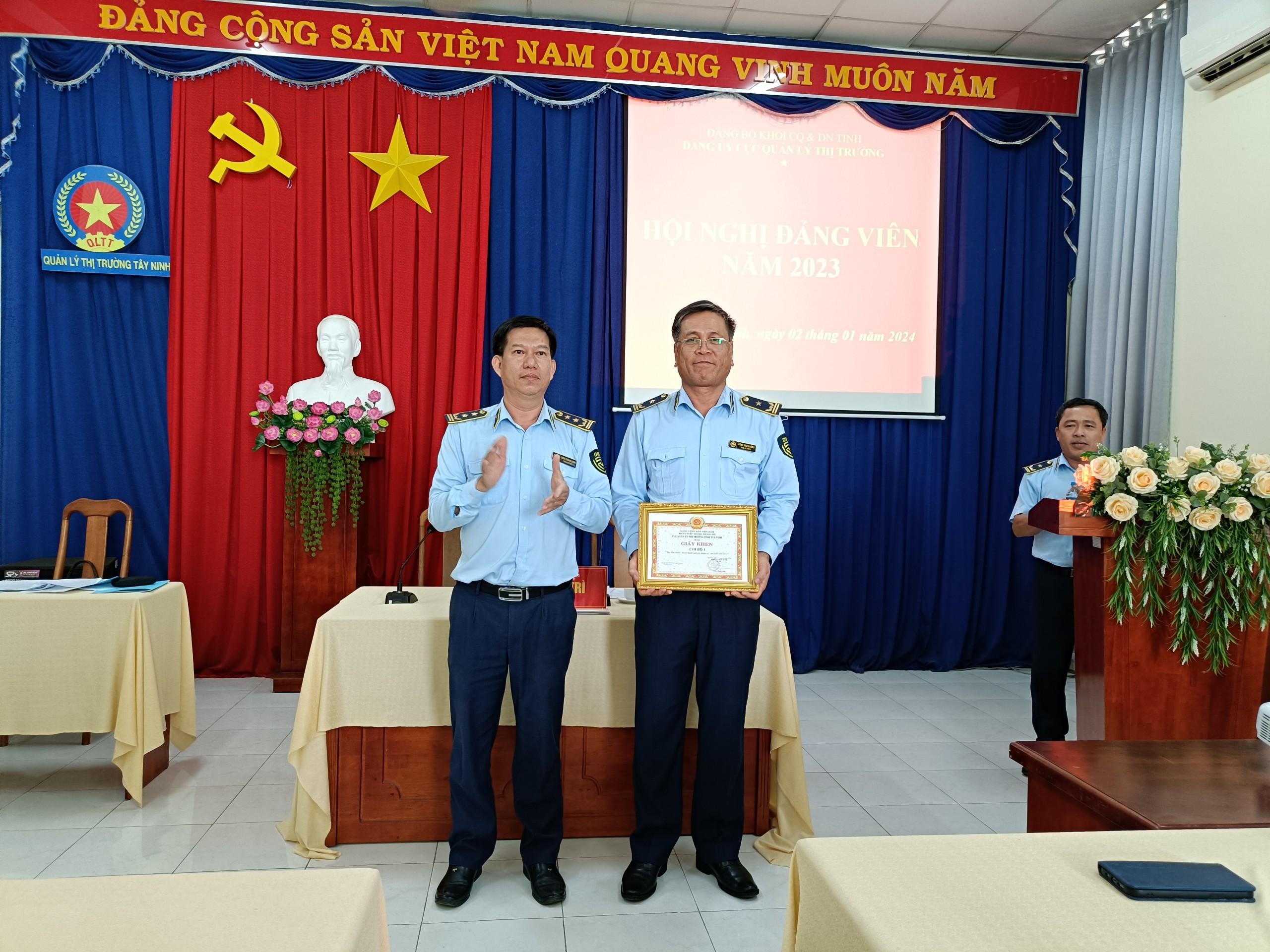 Đảng ủy Cục Quản lý thị trường tỉnh Tây Ninh tặng Giấy khen đối với Chi bộ trực thuộc và các đảng viên “Hoàn thành xuất sắc nhiệm vụ” tiêu biểu trong năm 2023.