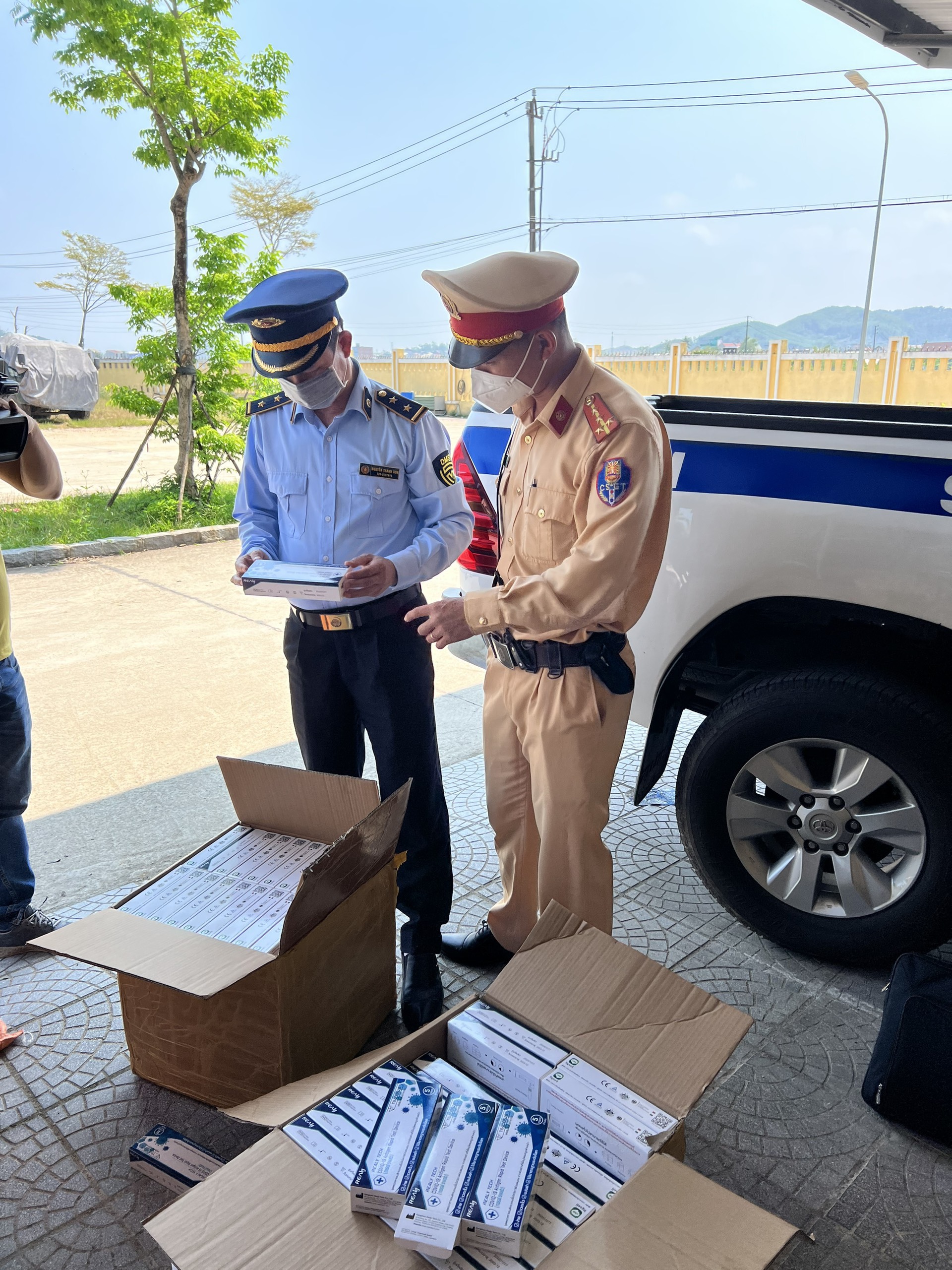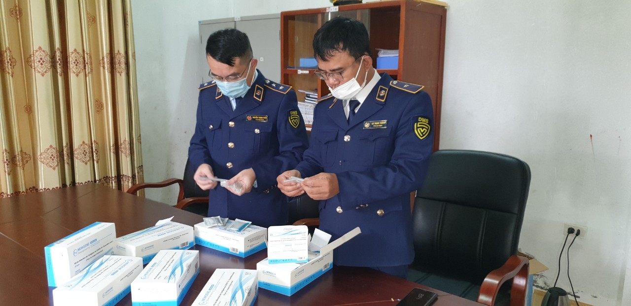 Đội QLTT số 6, Cục QLTT tỉnh Hà Tĩnh phối hợp phòng an ninh mạng và phòng chống tội phạm sử dụng công nghệ cao, Công an Hà Tĩnh kiểm tra, thu giữ 1.050 bộ kit test COVID-19 do nước ngoài sản xuất, không có hoá đơn, chứng minh nguồn gốc xuất xứ