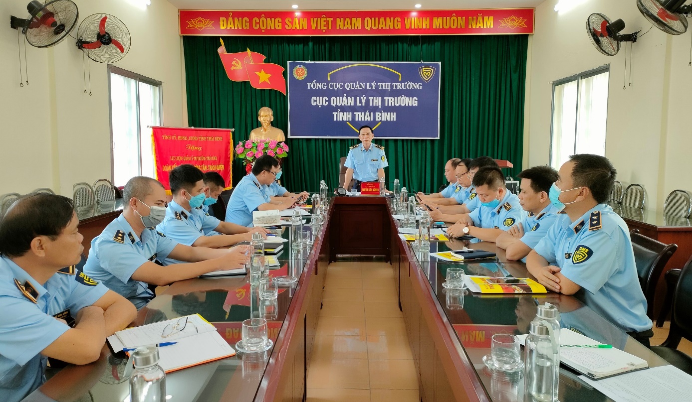 Sáng ngày 30/8/2021, Cục QLTT Thái Bình đã tổ chức Hội nghị giao ban đánh giá kết quả công tác tháng 8, triển khai nhiệm vụ công tác tháng 9 năm 2021. Đồng chí Nguyễn Văn Nghiên - Bí thư Đảng uỷ, Cục trưởng Cục Quản lý thị trường chủ trì Hội nghị