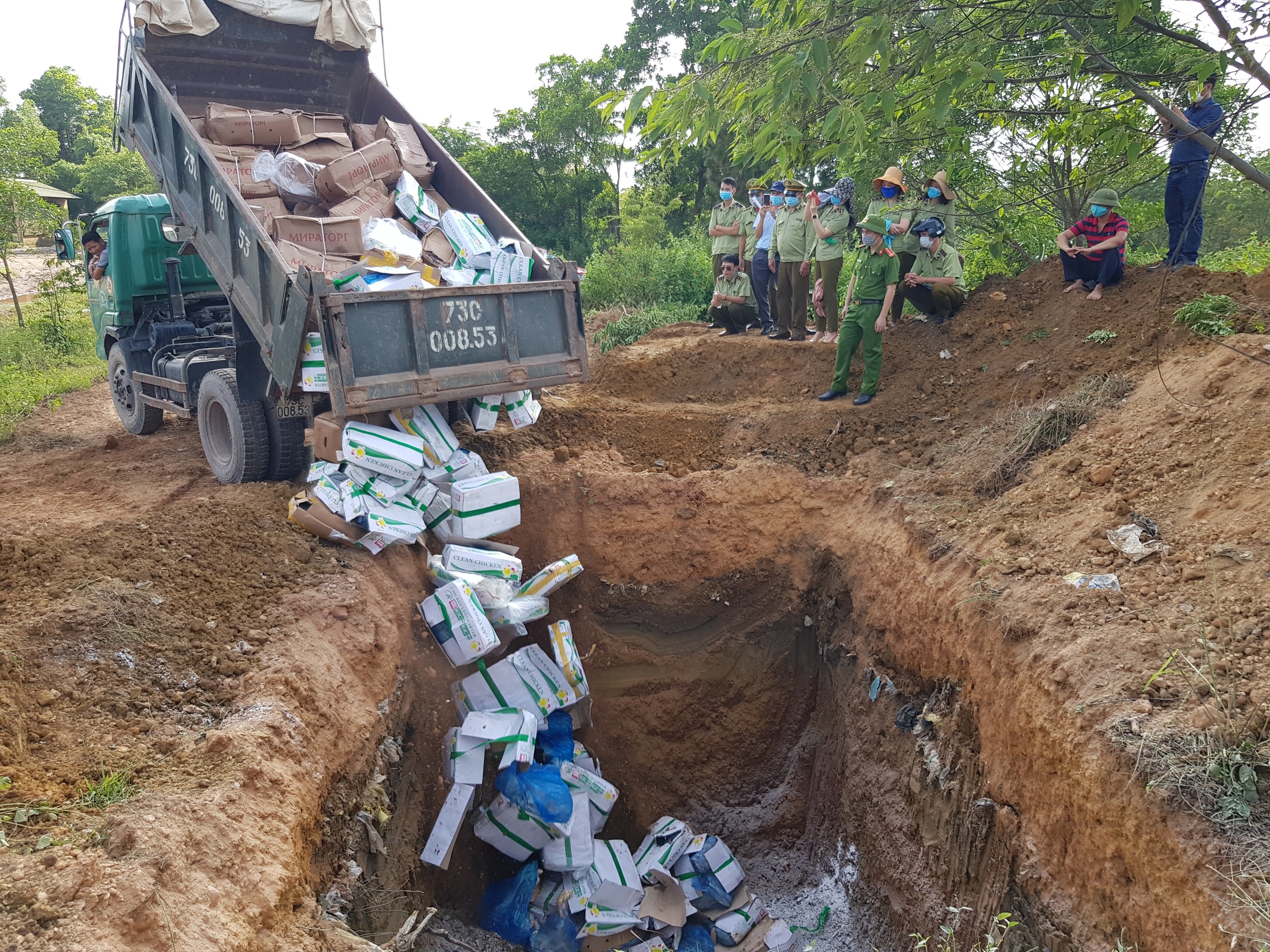 Chiều ngày 26/05/2021, Cục QLTT tỉnh Quảng Bình tổ chức tiêu hủy gần 2.000kg thực phẩm gồm đùi gà, thịt lợn đông lạnh và thịt ba chỉ bò đông lạnh là tang vật vi phạm hành chính bị tịch thu.