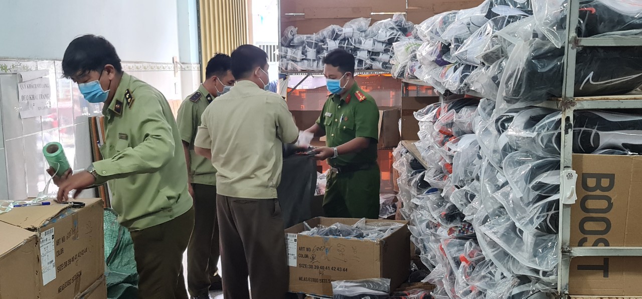 Thu giữ trên 1.500 đôi giày nghi vấn giả mạo nhãn hiệu NIKE, ADIDAS tại Bình Dương