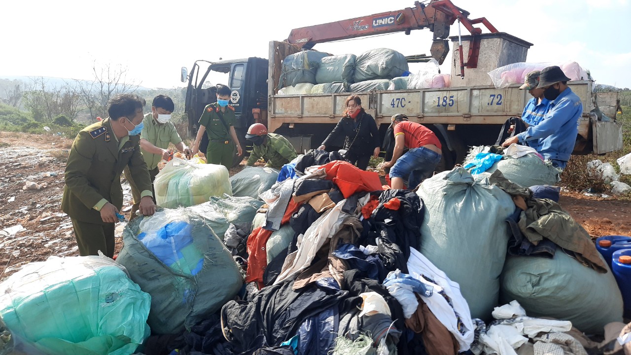 Đắk Lắk: Phát hiện và tiêu hủy 3,5 tấn quần áo và giày đã qua sử dụng