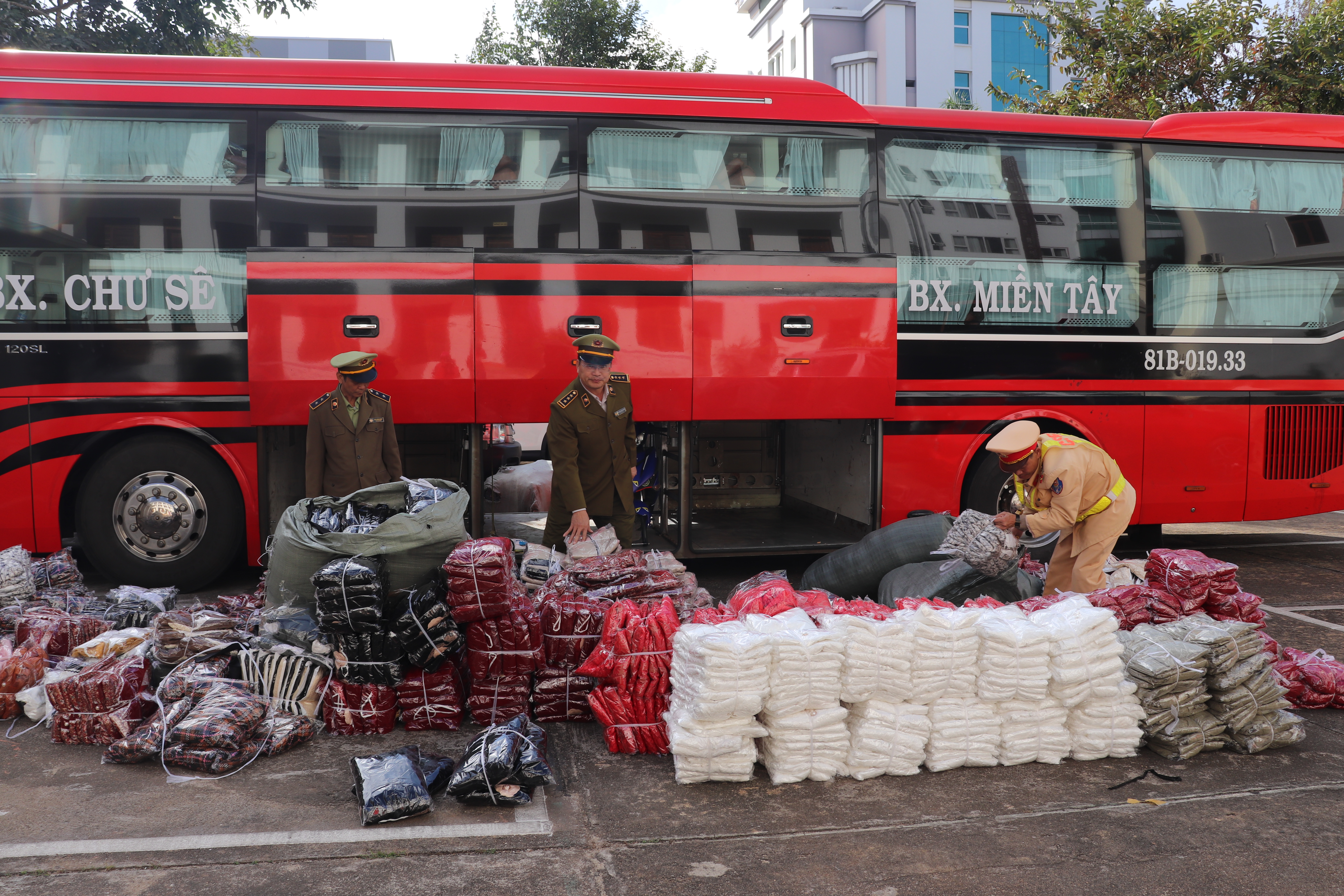 Qua kiểm tra, tổ công tác phát hiện có 20 bao tải bên trong chứa váy nữ. Tại thời điểm kiểm tra, tài xế Thế không xuất trình được hóa đơn, chứng từ chứng minh được nguồn gốc số hàng trên. Tài xế Thế khai nhận, số váy nữ này được bà Lã Thị Lan (44 tuổi) trú tại huyện Chư Sê, tỉnh Gia Lai đi cùng xe thuê vận chuyển từ TP.Hồ Chí Minh về tỉnh Gia Lai. Ngay sau đó, tổ công tác đã làm việc với bà Lan. Bước đầu, bà Lan khai nhận, số hàng này được bà mua từ quận Tân Bình, TP.Hồ Chí Minh với giá khoảng 70 triệu đồng. Đến chiều 16/1, bà Lan thuê chiếc xe khách này vận chuyển về huyện Chư Sê, tỉnh Gia Lai để bán lại kiếm lời. Giá vận chuyển mỗi bao tải là 100 nghìn đồng.