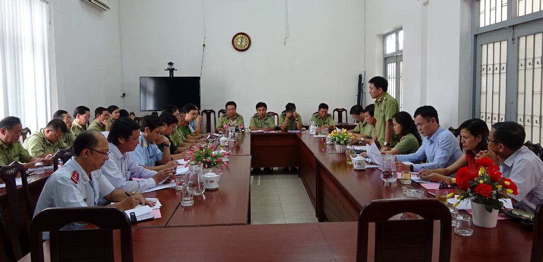 Tại buổi làm việc, ngoài báo cáo kết quả thực hiện nhiệm vụ 5 tháng đầu năm 2020, Cục QLTT Long An báo cáo Đoàn công tác một số khó khăn, vướng mắc trong quá trình thực hiện nhiệm vụ như: Thẩm quyền tham gia định giá tang vật, phương tiện vi phạm hành chính theo quyết định tạm giữ của Đội trưởng Đội QLTT cấp huyện thuộc Phòng Tài chính hay Sở Tài chính; việc xử lý phương tiện vận chuyển hàng cấm là thuốc lá điếu; trang thiết bị, phương tiện, công cụ hỗ trợ trang bị cho các Đội QLTT chưa đáp ứng tình hình, điều kiện công tác; cán bộ, kiểm soát viên chưa được tập huấn chuyên sâu về chuyên môn, nghiệp vụ kiểm tra, xử lý vi phạm hành chính…Ngoài ý kiến của Cục QLTT, đại diện các đơn vị như Công an, Bộ điện Biên phòng, Hải quan, Sở Công Thương cũng báo cáo nhằm làm rõ thêm về tình hình hoạt động, phương thức, thủ đoạn hoạt động của đối tượng buôn lậu; công tác phối hợp giữa các lực lượng kiểm tra ngăn chặn buôn lậu, gian lận thương mại, hàng giả trong thời gian qua…