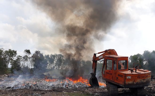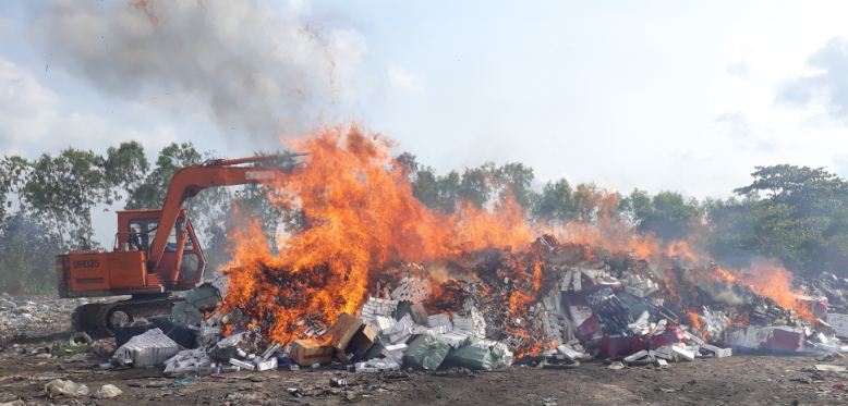 Đức Huệ tổ chức tiêu hủy thuốc lá điếu nhập lậu bị xử lý tịch thu không đạt chất lượng tại Long An