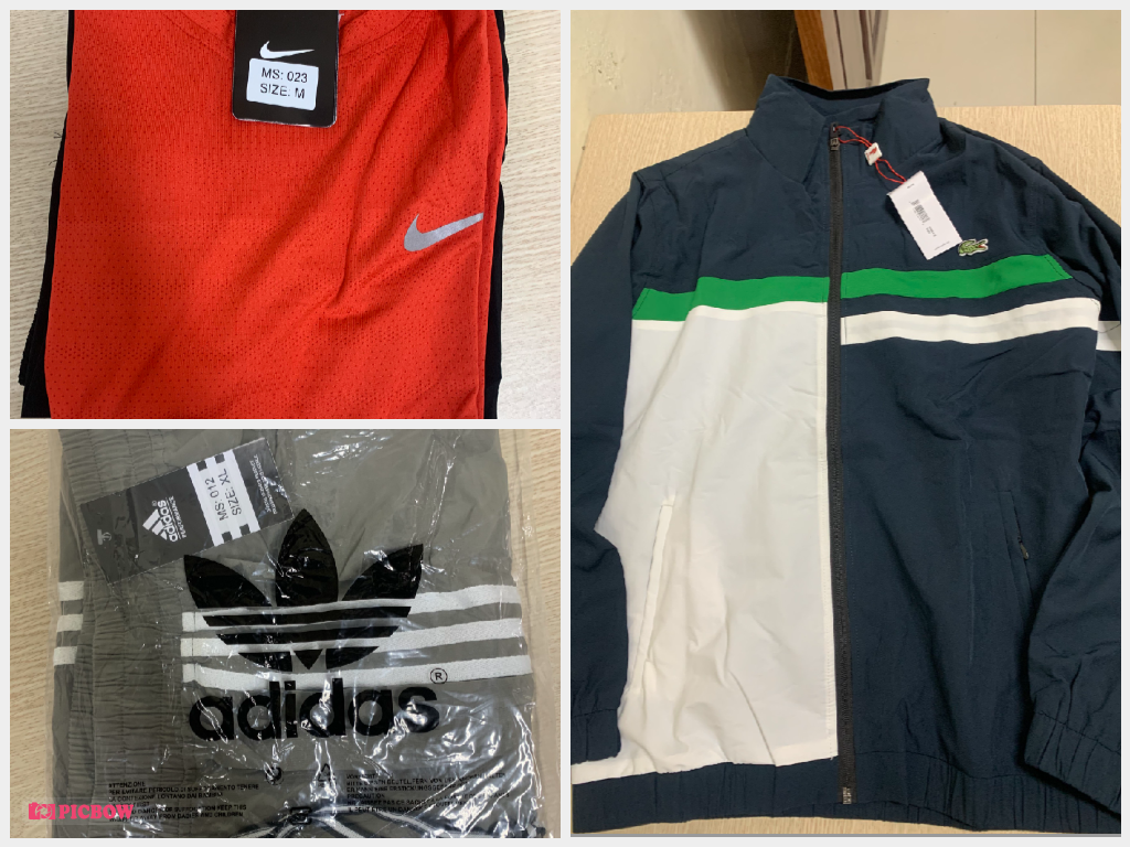 Qua quá trình xác minh, làm việc, Đoàn kiểm tra xác định toàn bộ số quần áo trên là giả mạo các nhãn hiệu Lacoste, Adidas, Nike đã đăng ký bảo hộ tại Việt Nam.