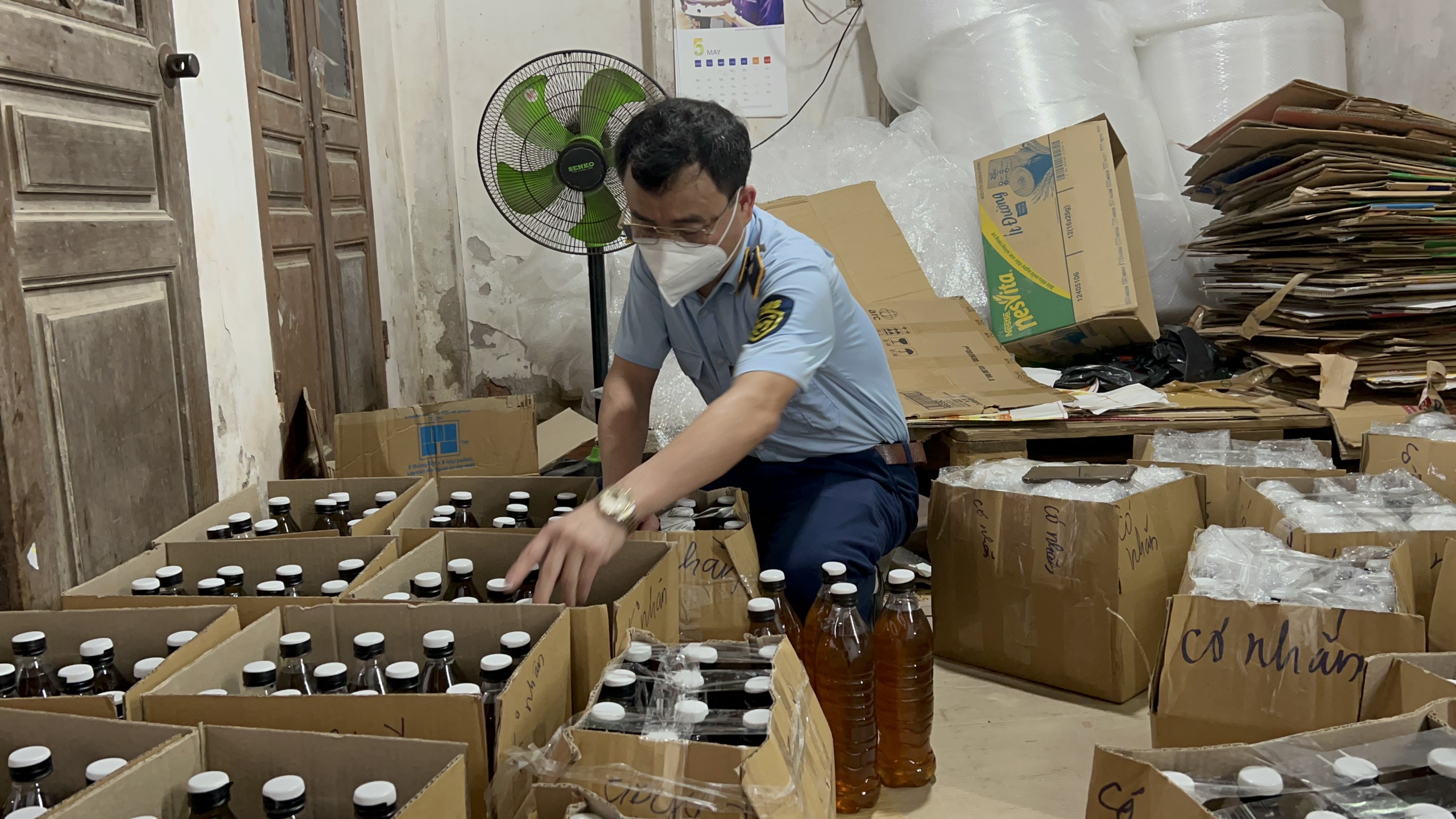 Hơn 2.000 lít mật ong mang thương hiệu "mật ong hoa nhãn" được chế biến từ đường, nha và nước cốt mạch vừa bị Đội Quản lý thị trường (QLTT) số 24, Cục QLTT thành phố Hà Nội phối hợp với Đội Cảnh sát điều tra tội phạm về kinh tế và ma tuý, Công an huyện Hoài Đức bất ngờ kiểm tra và thu giữ sau thời gian dài nắm bắt địa bàn và thẩm tra xác minh thông tin.