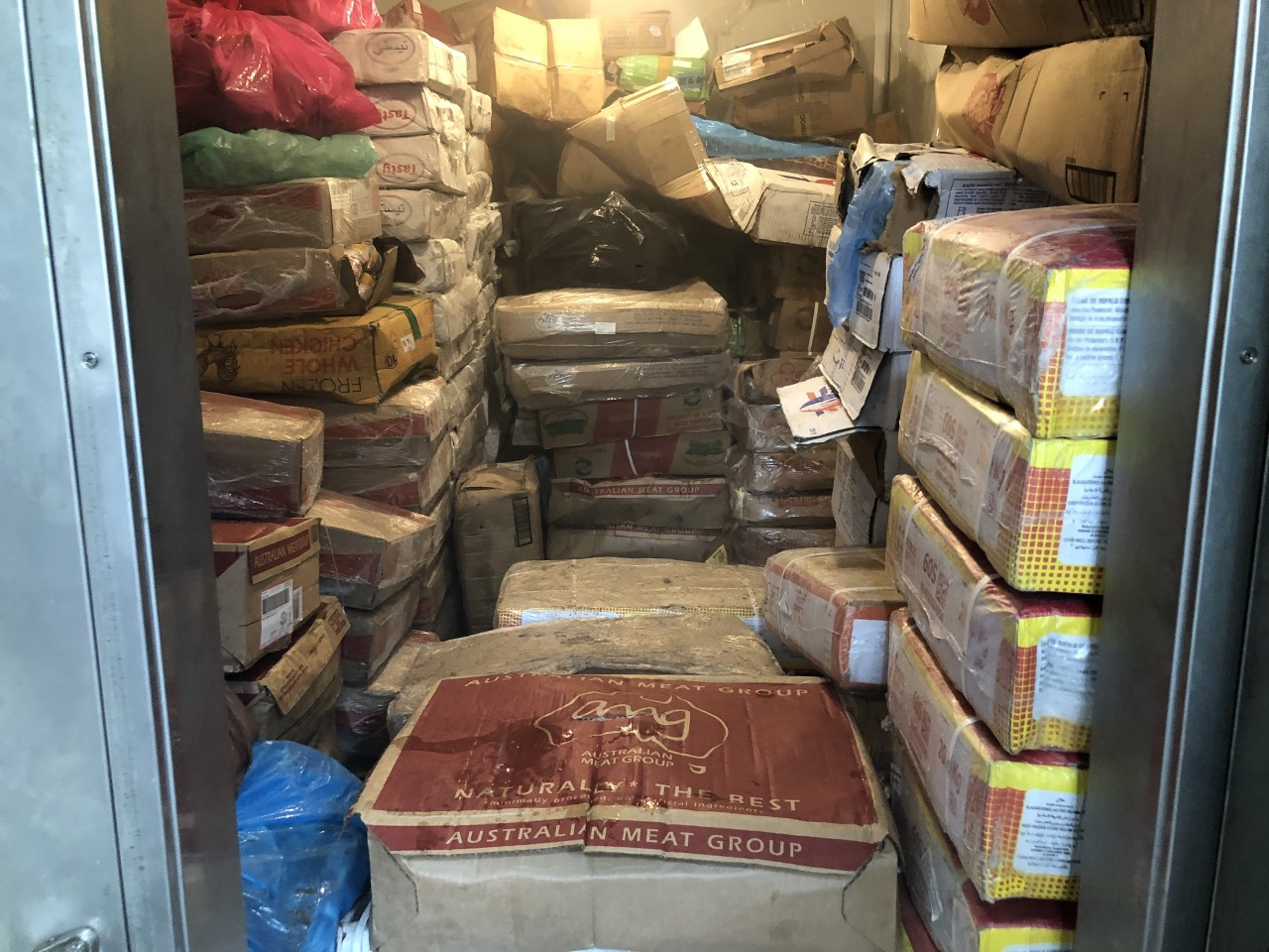 Tại thời điểm kiểm tra đã phát hiện tại cơ sở này đang kinh doanh 1.080kg thịt gia cầm, động vật và sản phẩm động vật các loại nhập lậu, cụ thể gồm: 300 kg đùi gà có nguồn gốc của Mỹ, 200kg tim bò có nguồn gốc Ấn Độ, 300kg sườn bẹ lợn có nguồn gốc Canada, 280kg xương ống bò có nguồn gốc từ Úc.