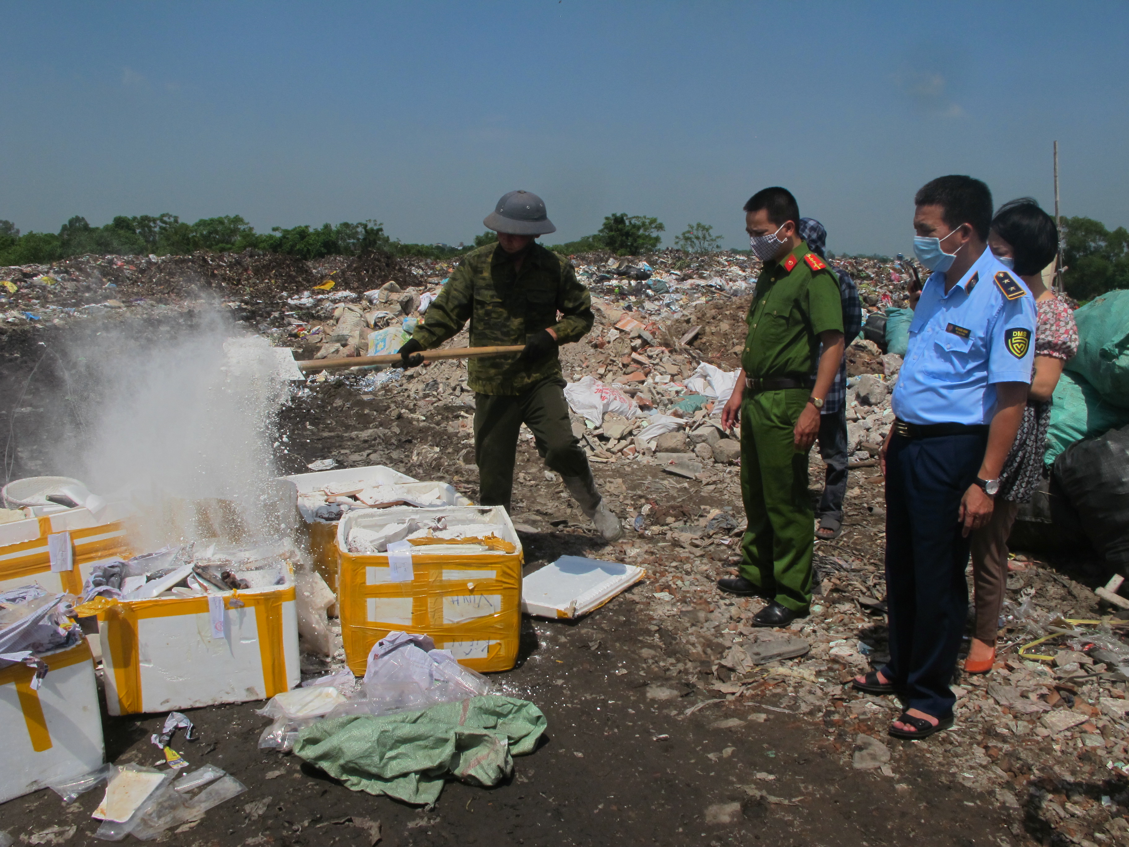 Vào hồi 9h30 ngày 28 tháng 7 năm 2021 tại nhà máy xử lý rác thải tỉnh Nam Định, dưới sự chứng kiến của Đại diện Cục Quản lý thị trường, công an tỉnh, Chi cục Quản lý chất lượng nông lâm sản, thủy sản tỉnh Nam Định, báo Nam Định và Đài Phát thanh Truyền hình tỉnh Nam Định, chủ cửa hàng đã cùng Đội quản lý thị trường số 1 tỉnh Nam Định tổ chức tiêu hủy gần nửa tấn thực phẩm tươi sống không rõ nguồn gốc bằng biện pháp xé bao bì, rắc vôi bột và cho xe ủi cán, lấp hố chôn.