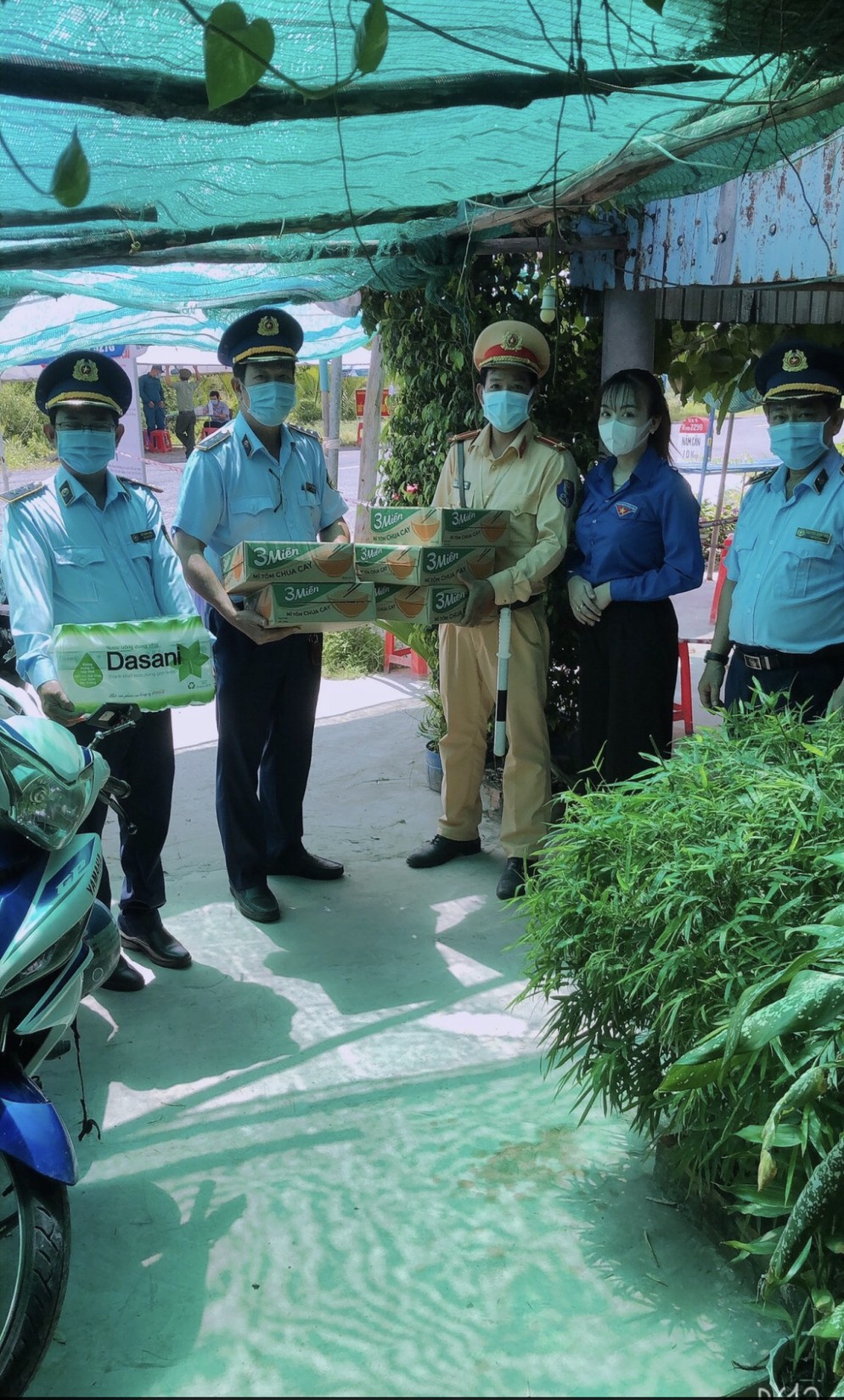 Đội Quản lý thị trường số 2 tặng mì gói, nước uống tại 02 chốt kiểm soát dịch bệnh trên địa bàn huyện Năm Căn và huyện Ngọc Hiển