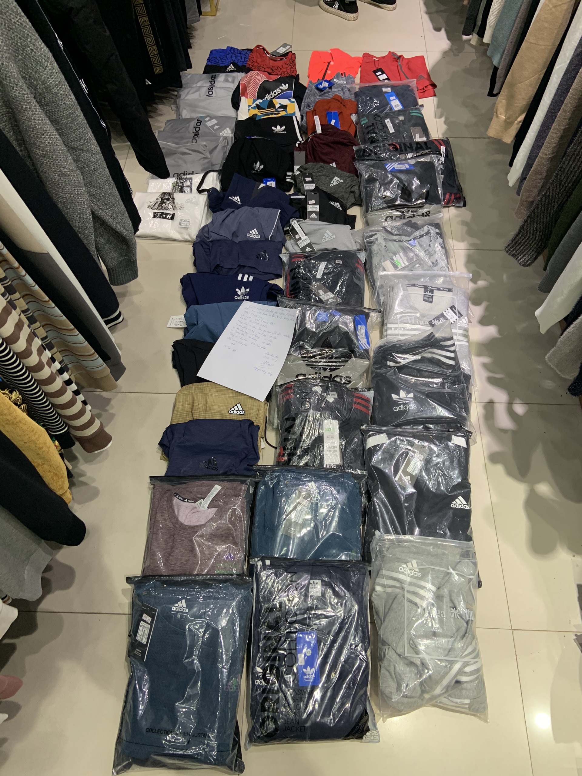 Tại thời điểm kiểm tra, Đoàn kiểm tra Đội Quản lý thị trường số 1 – Cục Quản lý thị trường đã phát hiện Cửa hàng Quần Áo Lâm Nhung đang trưng bày bán 54 sản phẩm có giá trị gần 24 triệu đồng là hàng hóa có dấu hiệu giả mạo nhãn hiệu gồm: Áo phông cộc tay, Áo phông dài tay và Quần dài. Toàn bộ số hàng hóa trên đều mang nhãn hiệu Adidas đã được bảo hộ tại Việt Nam và chủ cơ sở không xuất trình được bất kỳ một loại hóa đơn, chứng từ gì liên quan đến hàng hóa.