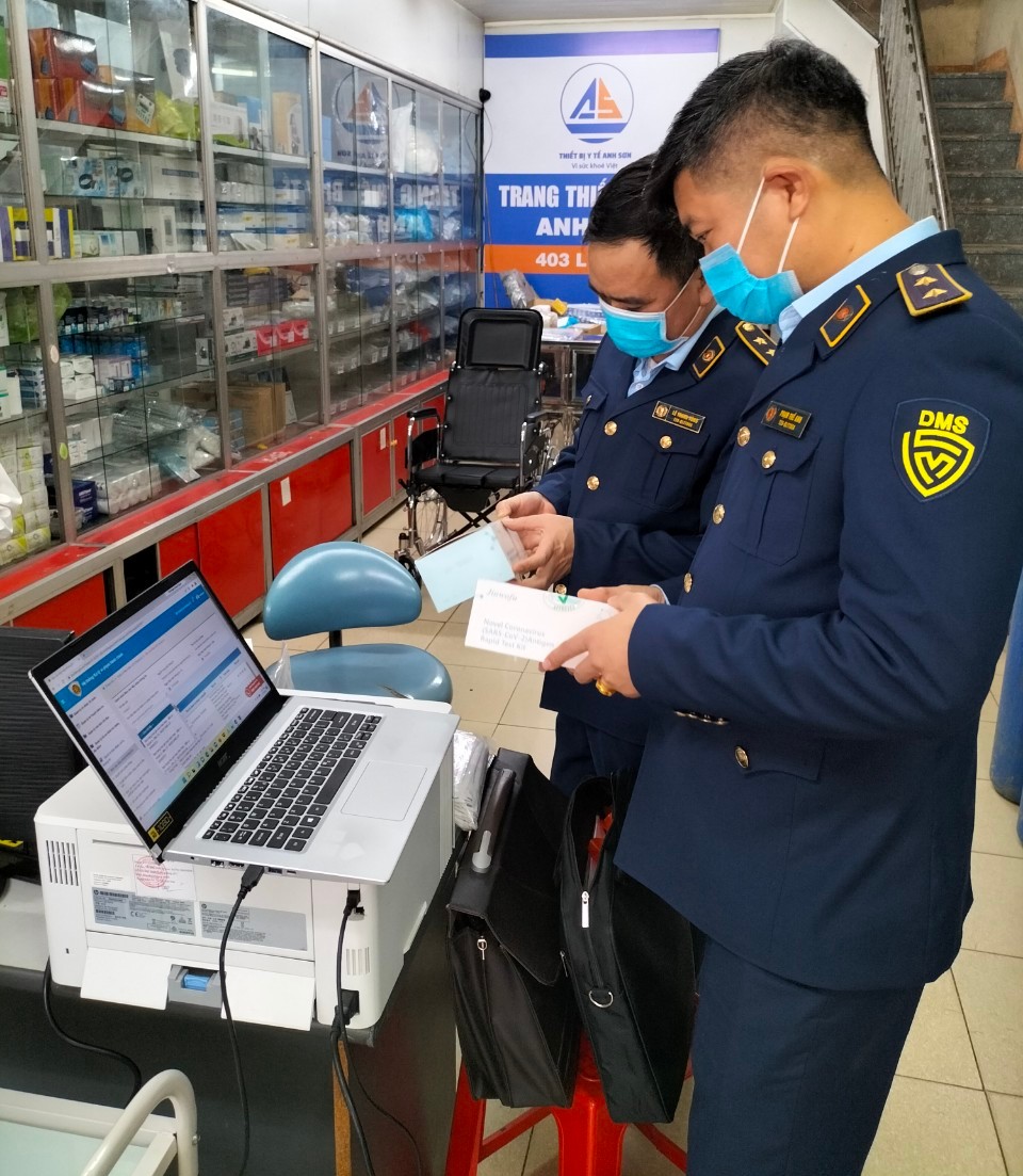Đội QLTT số 1 kiểm tra Kit test xét nghiệm Covid-19 tại cửa hàng