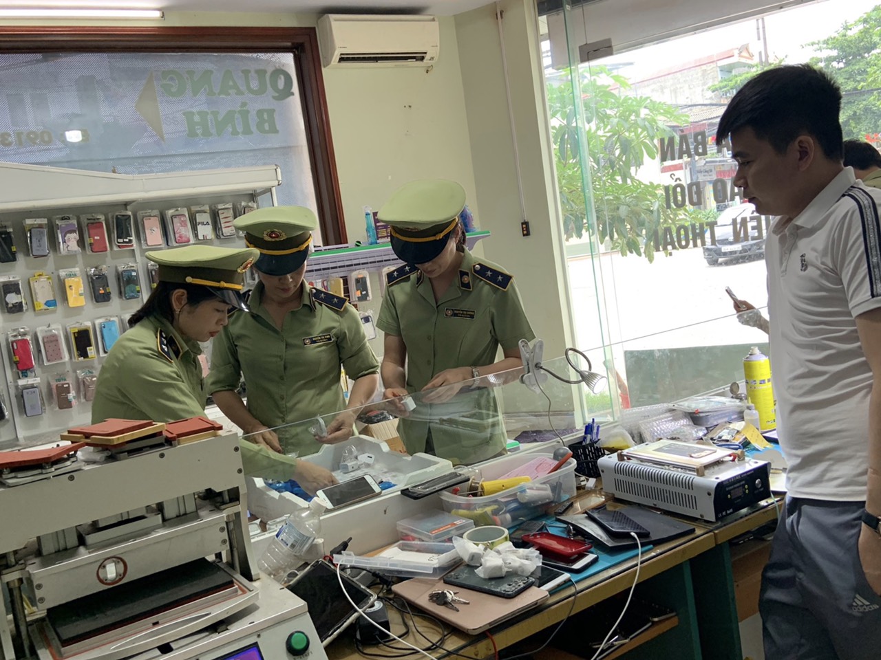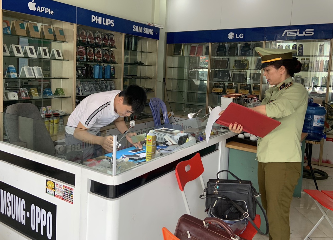 Tại thời điểm kiểm tra cửa hàng đang hoạt động kinh doanh bán lẻ các mặt hàng phụ kiện điện thoại các loại. Qua kiểm tra phát hiện cửa hàng đang bày bán một số mặt hàng phụ kiện điện thoại có dấu hiệu giả mạo nhãn hiệu Apple và Samsung, số lượng cụ thể: 98 dây sạc điện thoại nhãn hiệu Apple, 18 củ sạc nhãn hiệu Apple mã A1385, 25 tai nghe nhãn hiệu Apple, 19 củ sạc nhãn hiệu Sam sung. Ông Trần Đức Việt chủ cửa hàng không xuất trình được hóa đơn chứng minh nguồn gốc hợp pháp của số hàng hóa nêu trên