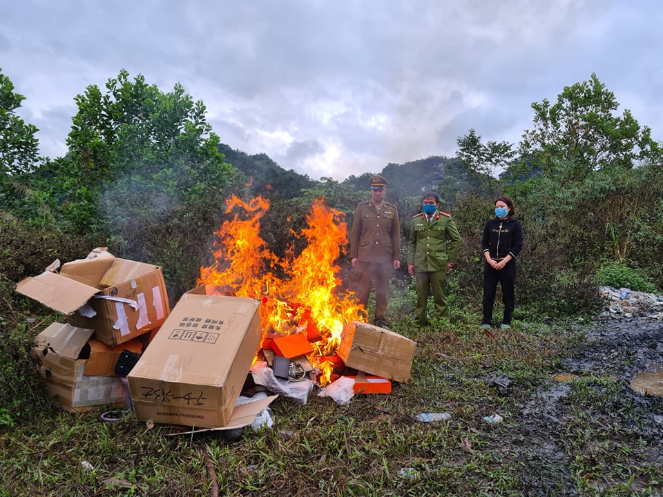 Ngày 08/02/2021, Đội Quản lý thị trường (QLTT) số 1 thuộc Cục Quản lý thị trường tỉnh Hà Giang cùng các đơn vị liên quan đã giám sát việc tiêu hủy 167 sản phẩm là túi xách, ví, giày, dép có dấu hiệu giả mạo nhãn hiệu nổi tiếng.