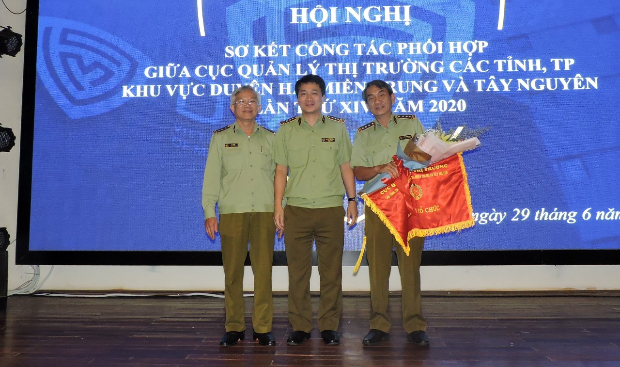 Kết thúc Hội nghị, lãnh đạo Tổng cục QLTT và Cục QLTT Kon Tum đã trao cờ và hoa cho lãnh đạo Cục QLTT Ninh Thuận là đơn vị đăng cai tổ chức Hội nghị Sơ kết Quy chế phối hợp công tác giữa các Cục QLTT khu vực Duyên Hải miền Trung - Tây Nguyên lần thứ XV, năm 2021.