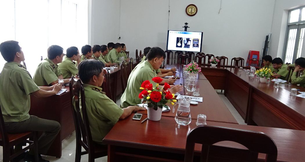 Tại điểm cầu Cục QLTT Long An, do ông Phạm Đức Chinh - Cục trưởng và Ông Võ Thiện Ngộ - Phó Cục trưởng chủ trì, cùng 24 cán bộ là lãnh đạo các Phòng, Đội và kiểm soát viên các Đội QLTT tham dự.