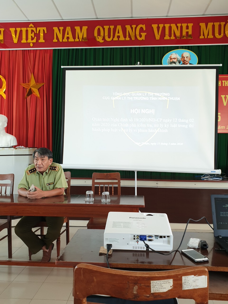 Ngày 19/5/2020 Cục QLTT Ninh Thuận đã tổ chức hội nghị quán triệt, phổ biến các nội dung Nghị định số 19 ngày 12/02/2020 của Chính phủ kiểm tra, xử lý kỷ luật trong thi hành pháp luật về xử lý vi phạm hành chính.