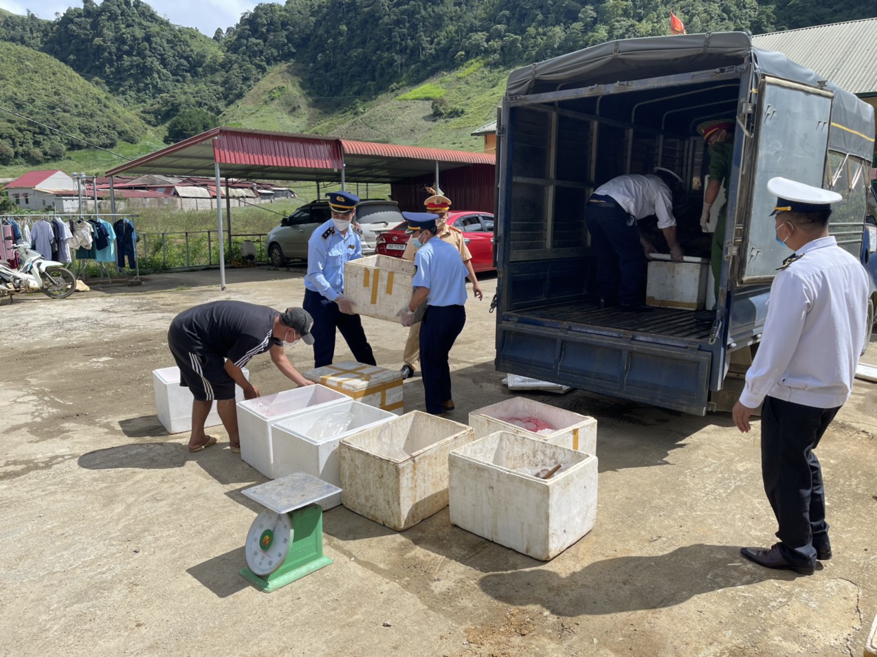Qua nguồn tin báo, trưa ngày 16/9/2021, tại KM162 thuộc bản Pa Kha, xã Lóng Luông, huyện Vân Hồ, tỉnh Sơn La, Đội Quản lý thị trường số 3 đã Phối hợp với Đội CSGT đường bộ số 1 thuộc Phòng CSGT (Công an tỉnh Sơn La), Đội cảnh sát điều tra tội phạm về Hình sự, Kinh tế, Ma túy (Công an huyện Vân Hồ) và Trạm Kiểm dịch động vật Lóng Luông tiến hành khám xe ô tô tải mang biển kiểm soát 29H- 461.13 do ông Nguyễn Xuân Sự, sinh năm 1973, địa chỉ: Phú Châu, huyện Ba Vì, thành phố Hà Nội điều khiển.