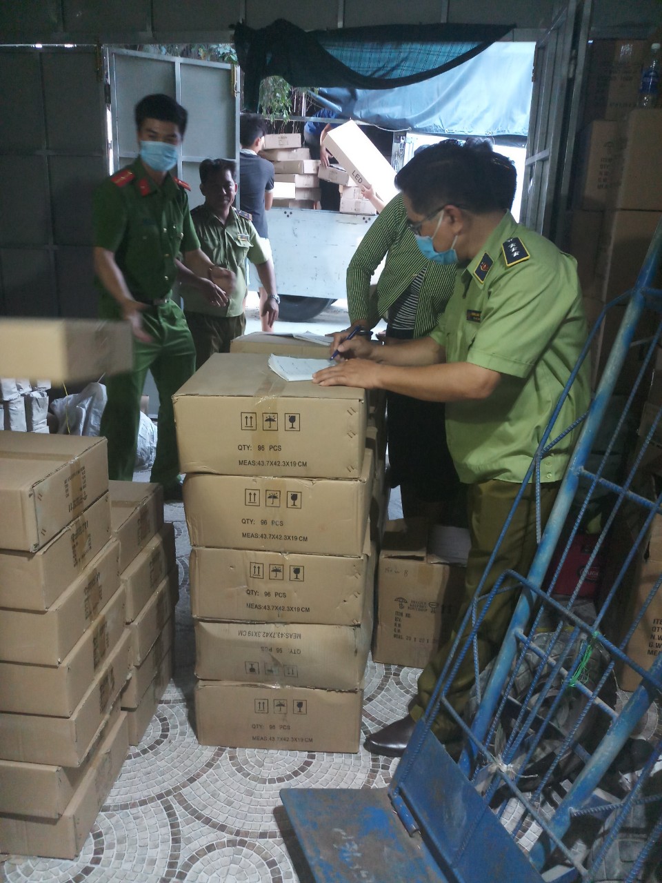 Trước đó, chiều ngày 23/3/2021, Đoàn kiểm tra Đội QLTT số 2 – Cục QLTT tỉnh Vĩnh Long kết hợp với Đội Cảnh sát Kinh tế – Công an huyện Tam Bình tiến hành kiểm tra hộ kinh doanh Cẩm Tú tại địa chỉ số 450 – QL1A, Tổ 18, ấp Phú Ninh, xã Song Phú, huyện Tam Bình, tỉnh Vĩnh Long. Đoàn kiểm tra phát hiện cơ sở đang gia công lắp ráp đèn led, tại hiện trường có 800 thùng và 289 kiện hàng hóa là nguyên liệu để lắp ráp 09 loại đèn led như: Đèn pha đen 50W, 100W, 150W; đèn pha ly 100W, 200W, 400W; đèn pha xám 200W; đèn lá 200W; đèn nhà xưởng 150W; và gần 200 bộ đèn thành phẩm các loại. Lúc kiểm tra đại diện hộ kinh doanh Cẩm Tú có trình được giấy chứng nhận đăng ký kinh doanh (lắp ráp đèn led) nhưng chưa xuất trình được hợp đồng gia công lắp ráp đèn led, hồ sơ công bố hợp quy, hóa đơn chứng từ của hàng hóa, hàng hóa có dấu hiệu vi phạm về nhãn (không có nhãn gốc, nhãn phụ bằng tiếng Việt Nam). Đoàn kiểm tra đã tạm giữ tang vật nêu trên và tiến hành xác minh làm rõ.