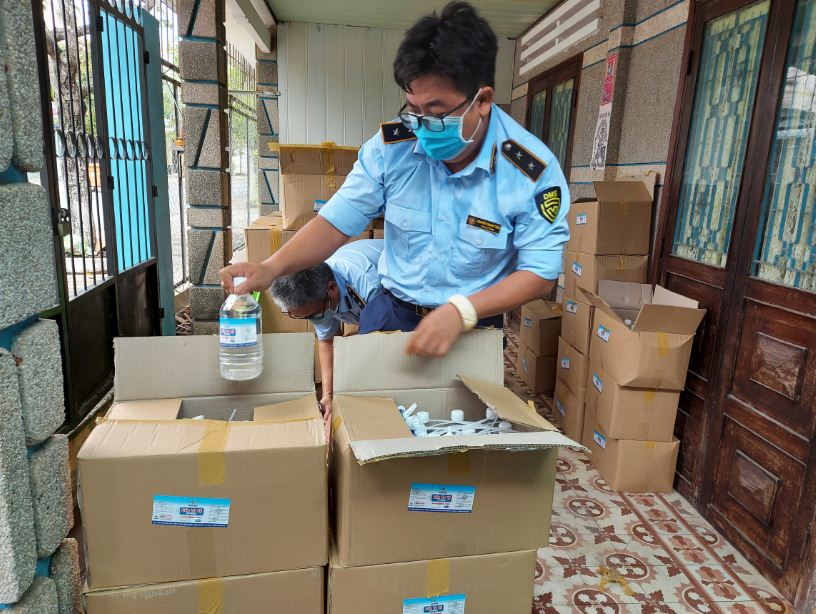Cũng trong ngày 15/9, Đội QLTT số 3, phối hợp Công an thành phố Tân An kiểm tra điểm kinh doanh thiết bị y tế trên địa bàn phường 2, thành phố Tân An, phát hiện, tạm giữ gần 1.200 lít cồn (loại dùng trong y tế) không rõ nguồn gốc, xuất xứ.