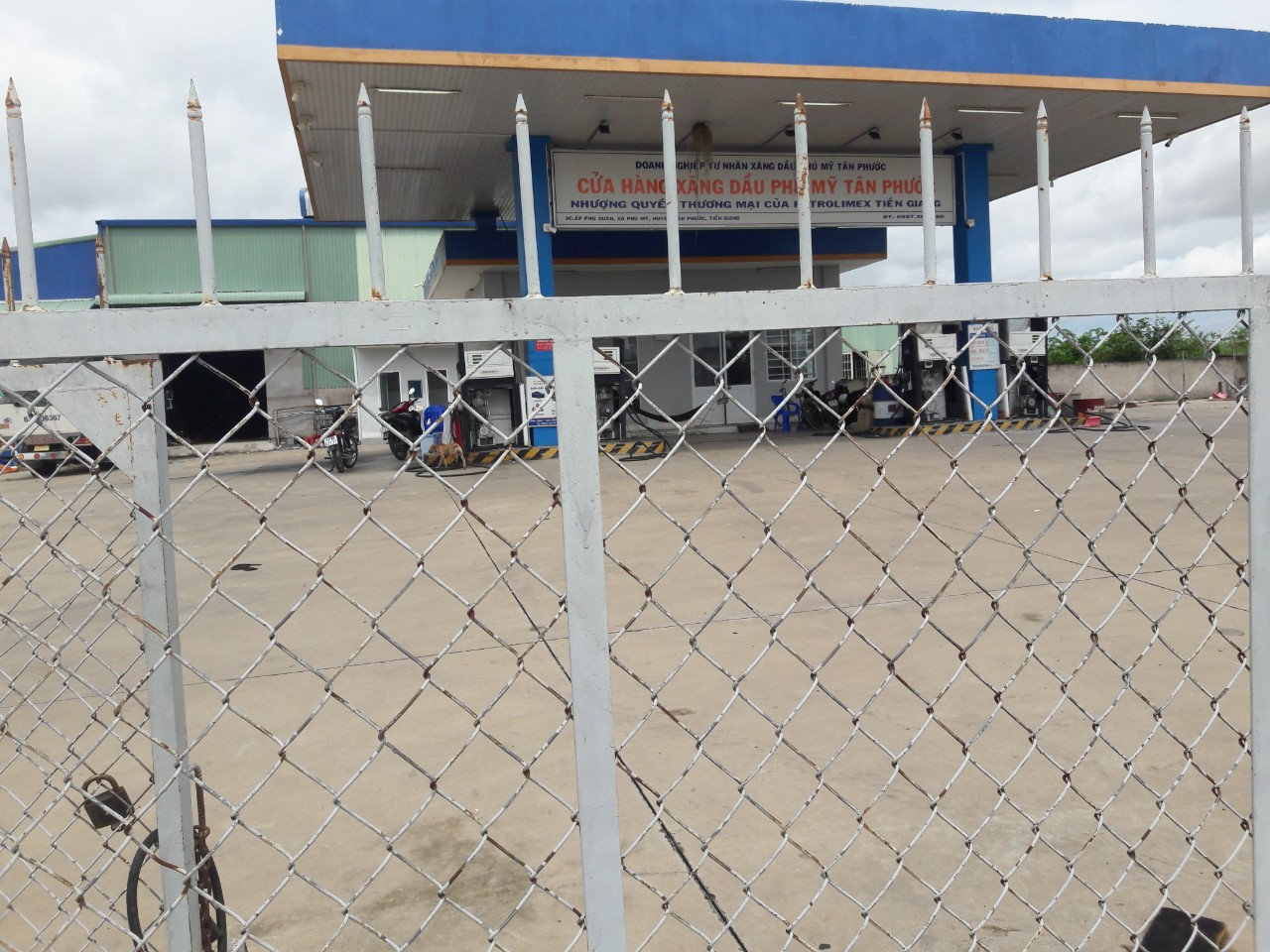Cửa hàng tại huyện Tân Phước tạm ngưng hoạt động để sửa chữa trụ bơm
