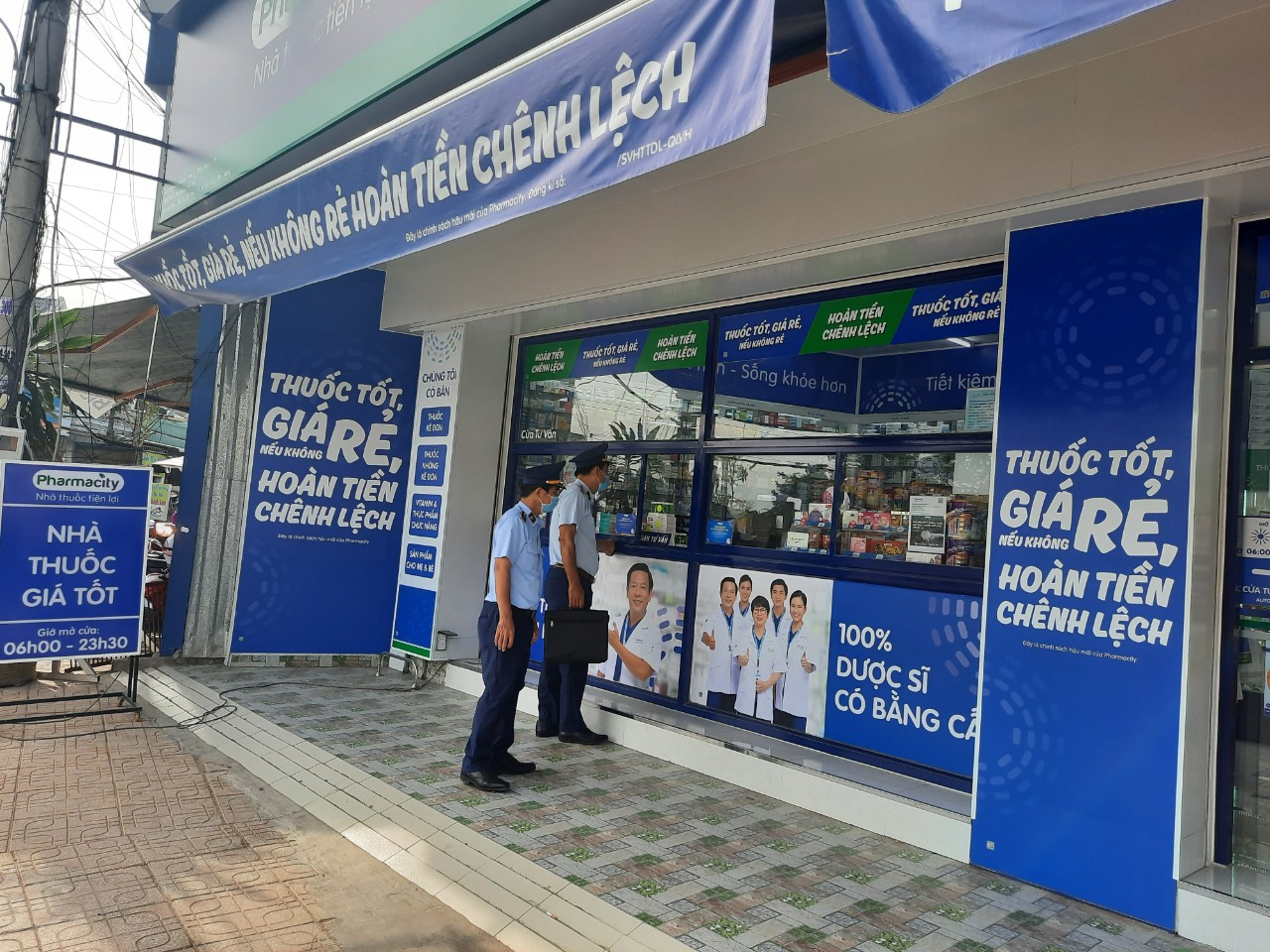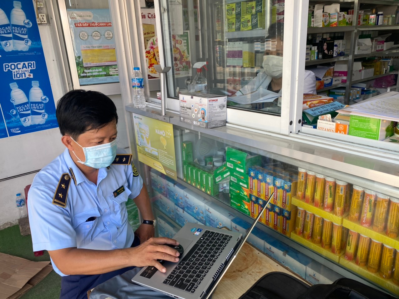 Đội QLTT số 3 giám sát tại Quầy thuốc tây trên địa bàn thị xã Cai Lậy