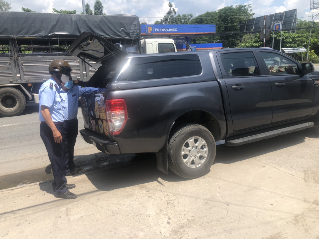 Qua khám phương tiện vận tải nêu trên, phát hiện 8 bịch phụ gia chế biến thức ăn chăn nuôi, loại 5 kg/bịch, xuất xứ Trung Quốc. Hàng hóa này của 01 doanh nghiệp có trụ sở chính trên địa bàn Thành phố Hồ Chí Minh, có hóa đơn chứng từ chứng minh nguồn gốc xuất xứ, có nhãn gốc bằng tiếng nước ngoài nhưng không có nhãn phụ bằng tiếng Việt Nam; với giá trị tang vật vi phạm là 38,4 triệu đồng.