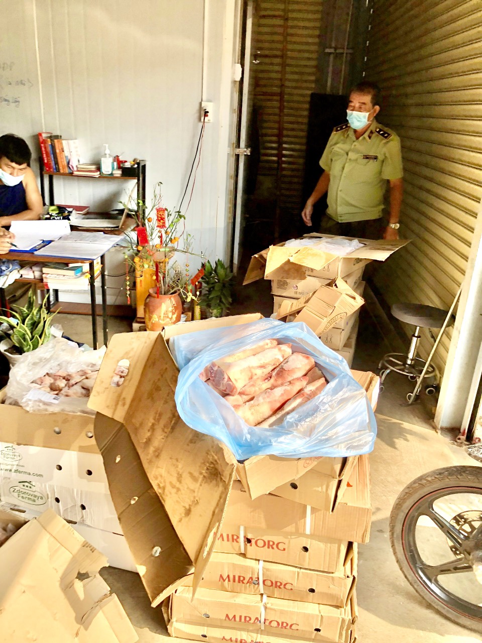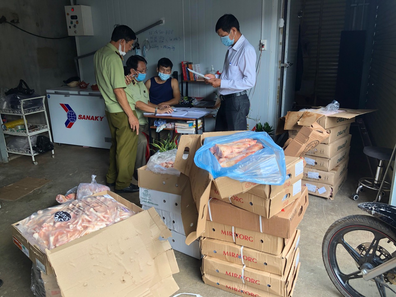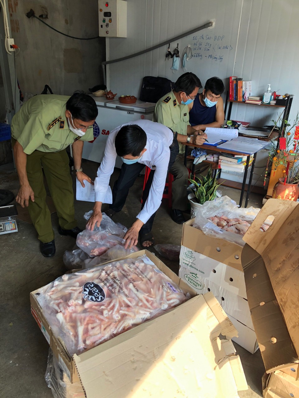 Tiếp tục thực hiện chỉ đạo của Tổng cục QLTT về công tác kiểm tra, xử lý các hành vi vi phạm trong lĩnh vực ATTP, qua công tác quản lý địa bàn, vào ngày 03/6/2021, Đoàn kiểm tra của Đội QLTT số 1 (địa bàn Thành phố Đồng Xoài – huyện Đồng Phú), Cục QLTT Bình Phước phối hợp với Trung tâm dịch vụ nông nghiệp thành phố Đồng Xoài tiến hành kiểm tra đột xuất đối với cơ sở kinh doanh thịt đông lạnh Đông Đại Phát có địa chỉ tại: Tổ 6B, khu phố Xuân Bình, phường Tân Bình, thành phố Đồng Xoài, tỉnh Bình Phước do ông L.V.Đ sinh năm 1991 làm chủ cơ sở.