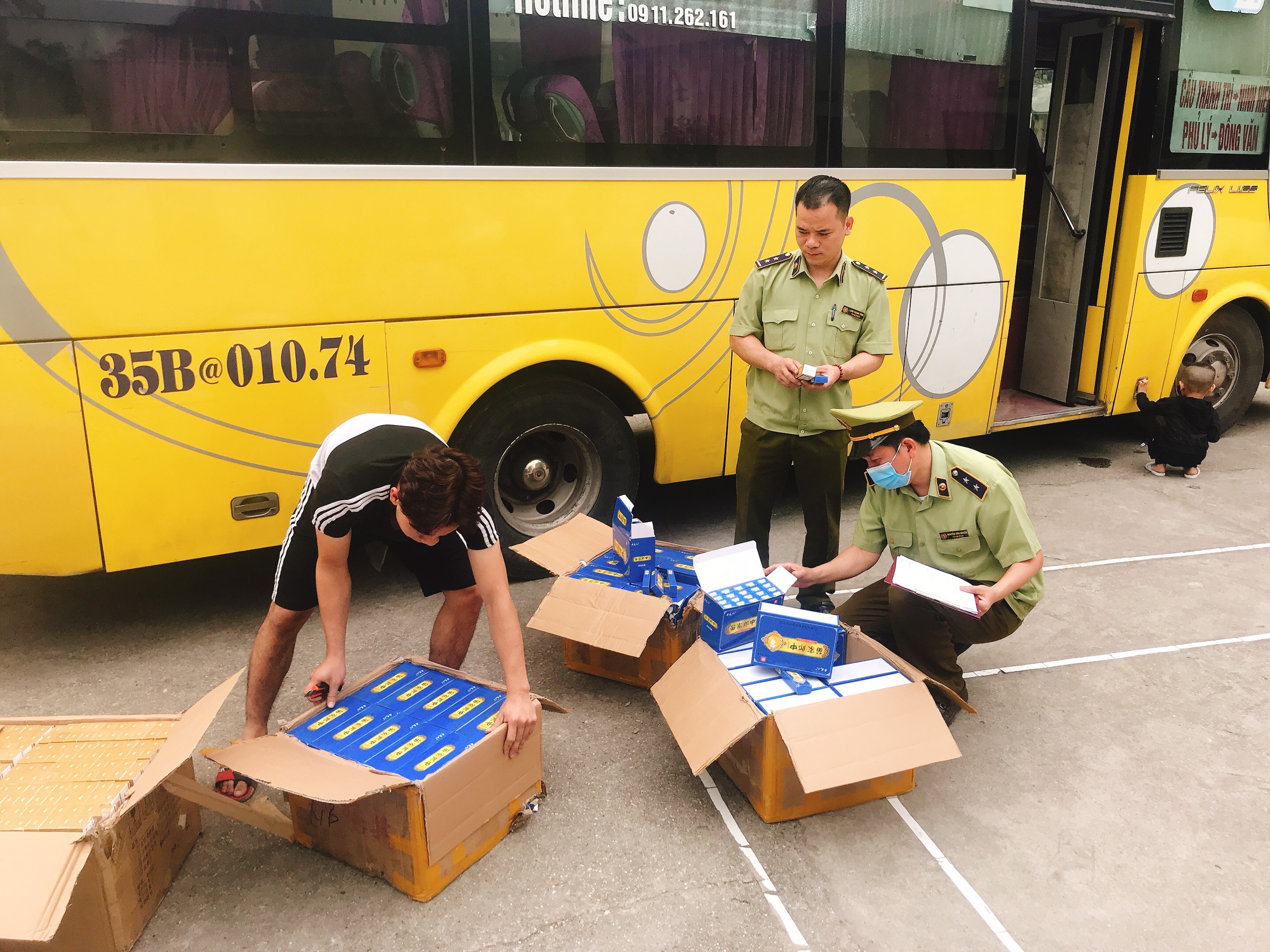 Ngày 14/3/2021, trên tuyến quốc lộ 1A, tổ công tác thuộc Đội QLTT số 4 đã phát hiện đối tượng găm, cắm gần 2.000 sản phẩm thuốc chữa bệnh trĩ, bệnh bôi ngoài da trên xe khách chạy tuyến Lạng Sơn - Ninh Bình biển số: 35B- 010.74