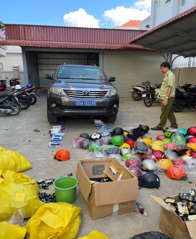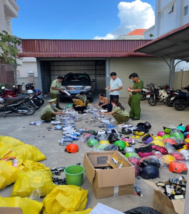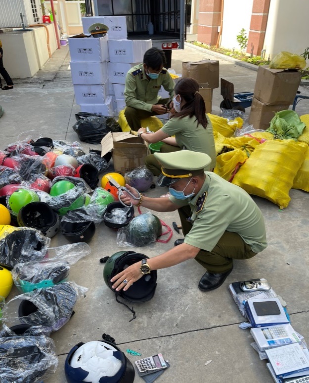 (Hàng hóa tiêu hủy gồm: Mũ bảo hiểm, máy tính CASIO, máy massage xung điện, thuốc lá điếu nhập lậu, mỹ phẩm các loại, dầu nóng, dầu gió, tinh dầu các loại…)
