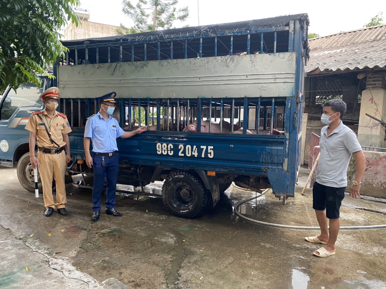 Qua kiểm tra phát hiện trên xe ô tô vận chuyển 35 con lợn thịt có tổng trọng lượng khoảng trên 2.000 kg. Quá trình làm việc, lái xe khai nhận số lợn trên được chở từ tỉnh Tuyên Quang về tiêu thụ tại tỉnh Bắc Giang nhưng không có giấy tờ kiểm dịch theo quy định.